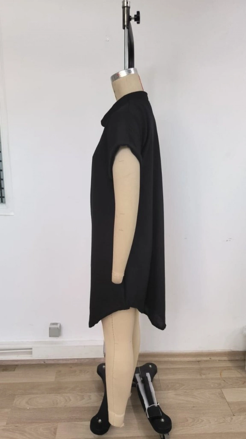 Kadın Kısa Kollu önden Düğmeli Ithal Keten Elbise
