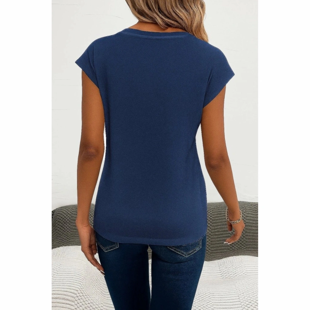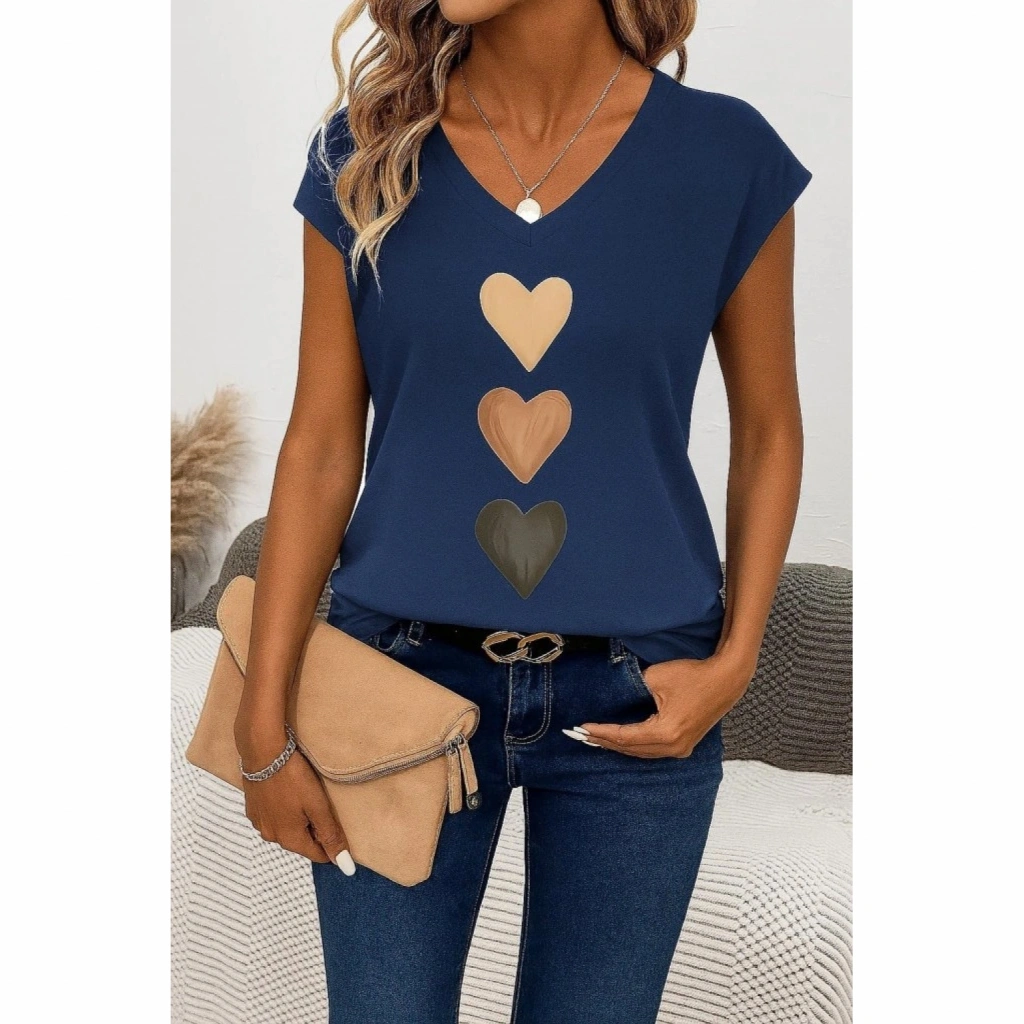 Kadın Kısa Kollu V Yakalı Kalp Desen Viskon Bluz