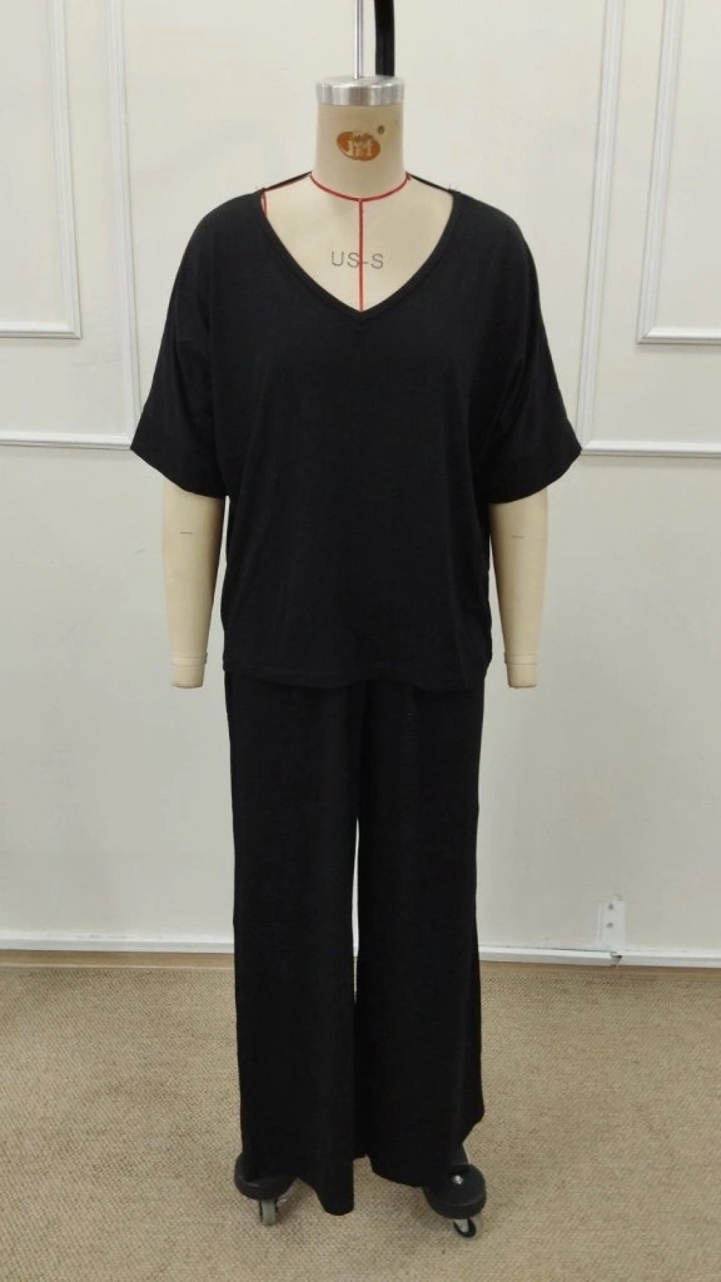 Kadın Kısa Kollu V Yakalı Viskon Bluz Ve Pantolon Ikili Takım