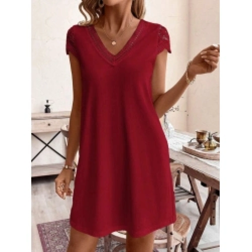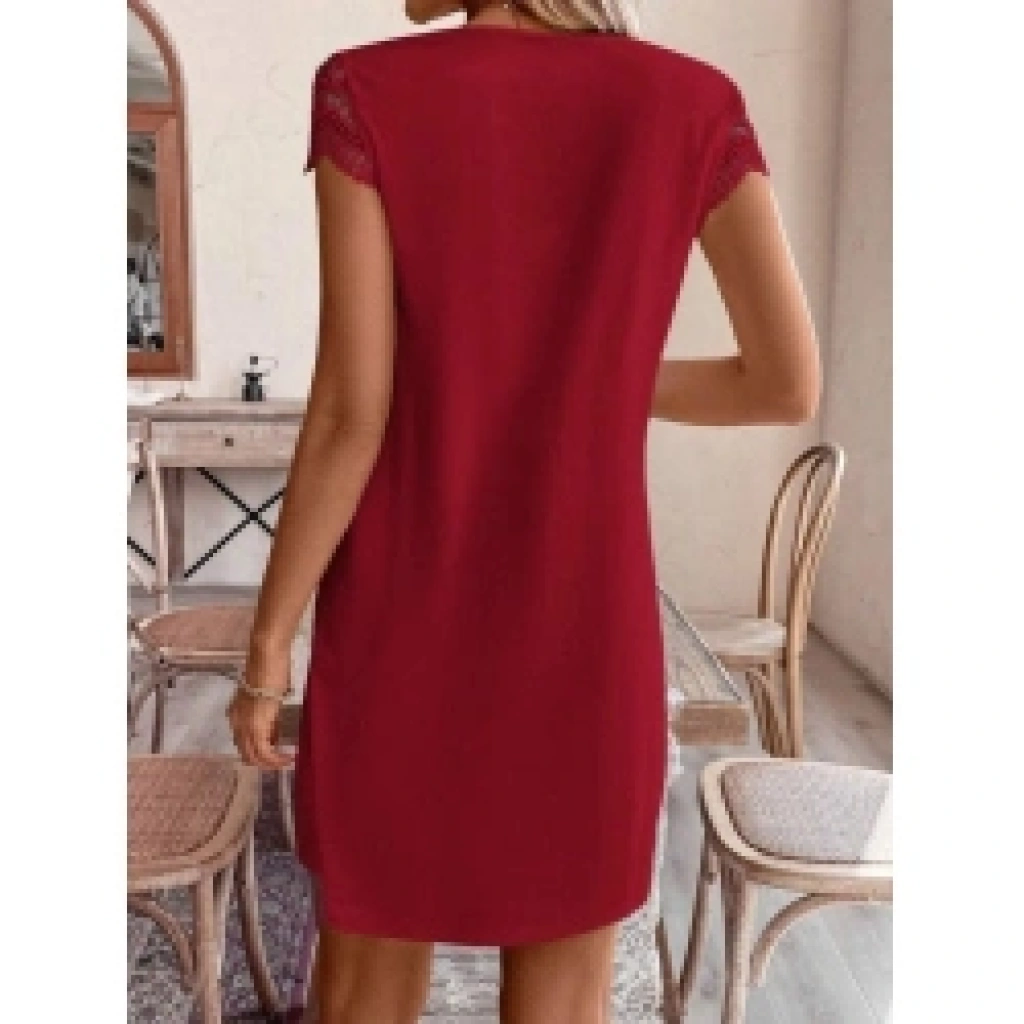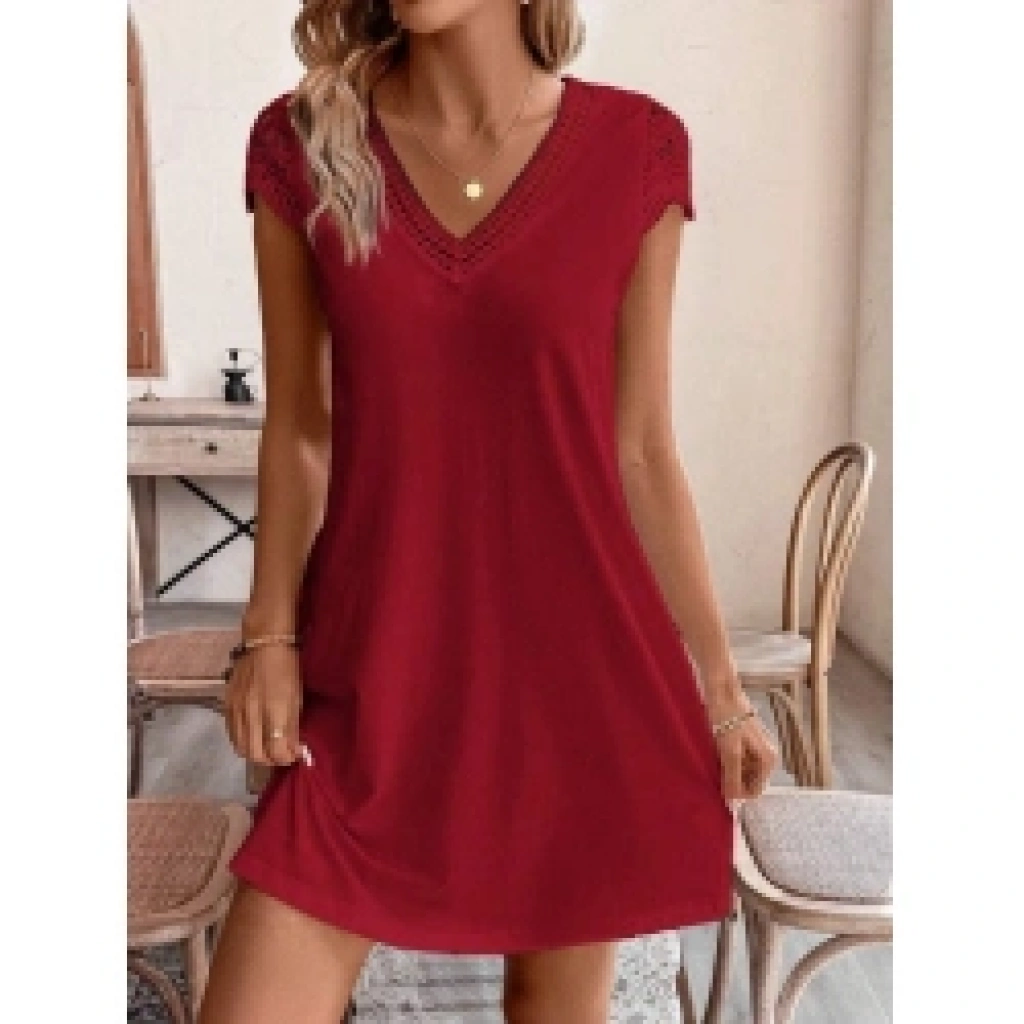 Kadın Kısa Kollu V Yakalı Viskon Elbise