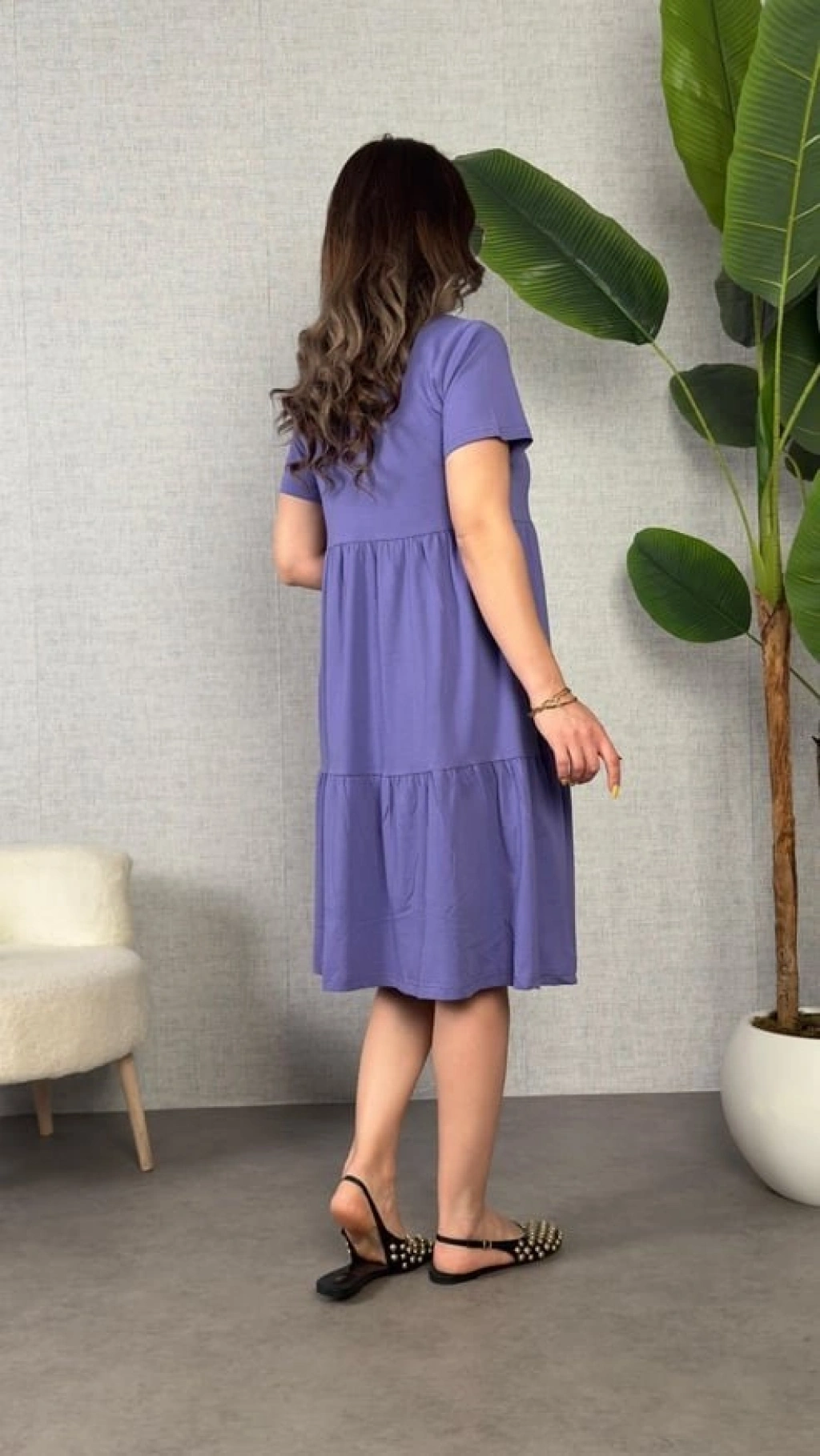 Kadın Kısa Kollu V Yakalı Viskon Elbise