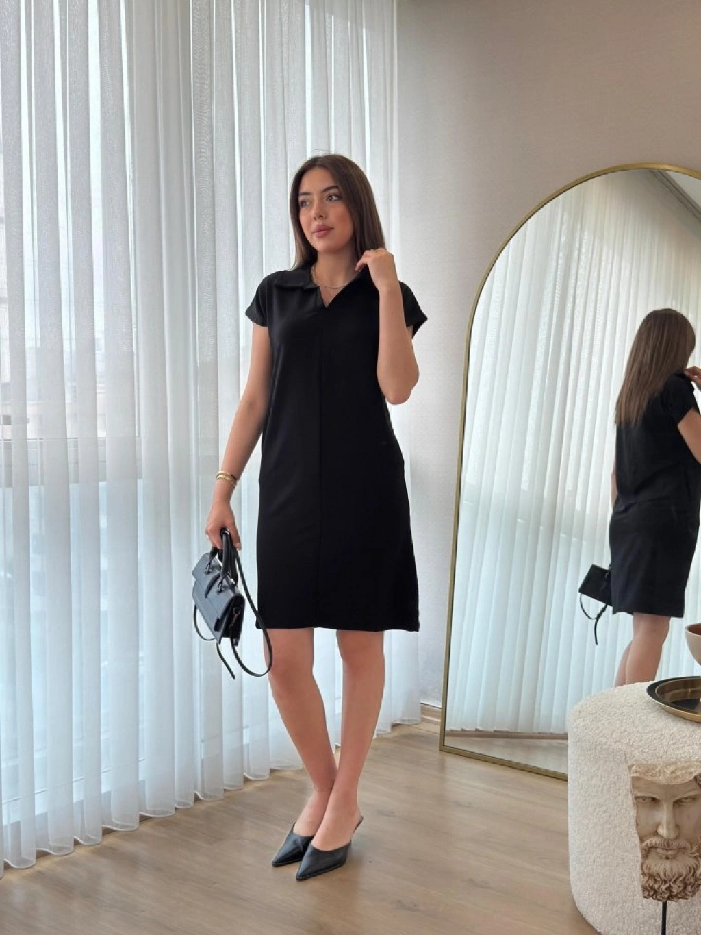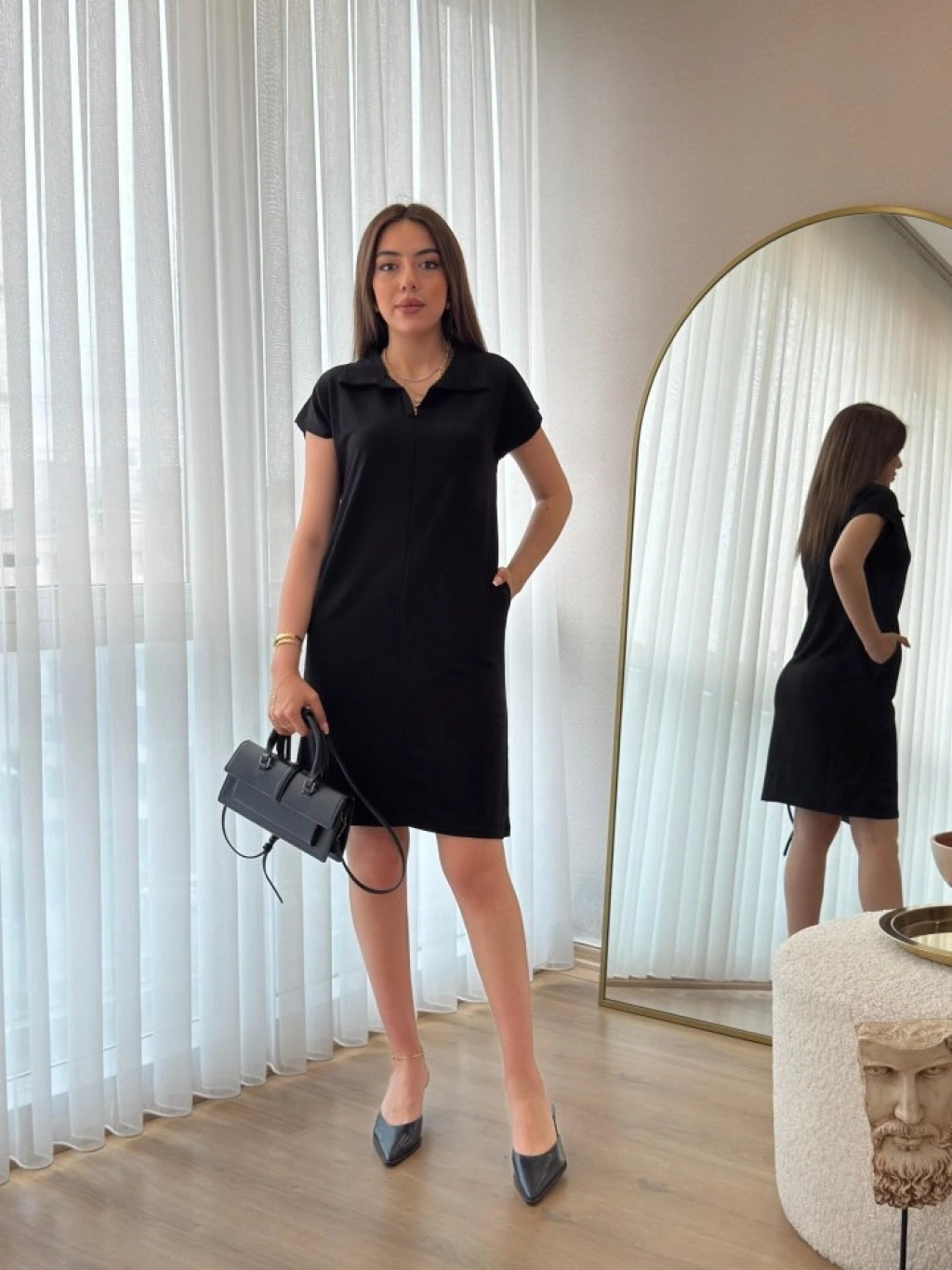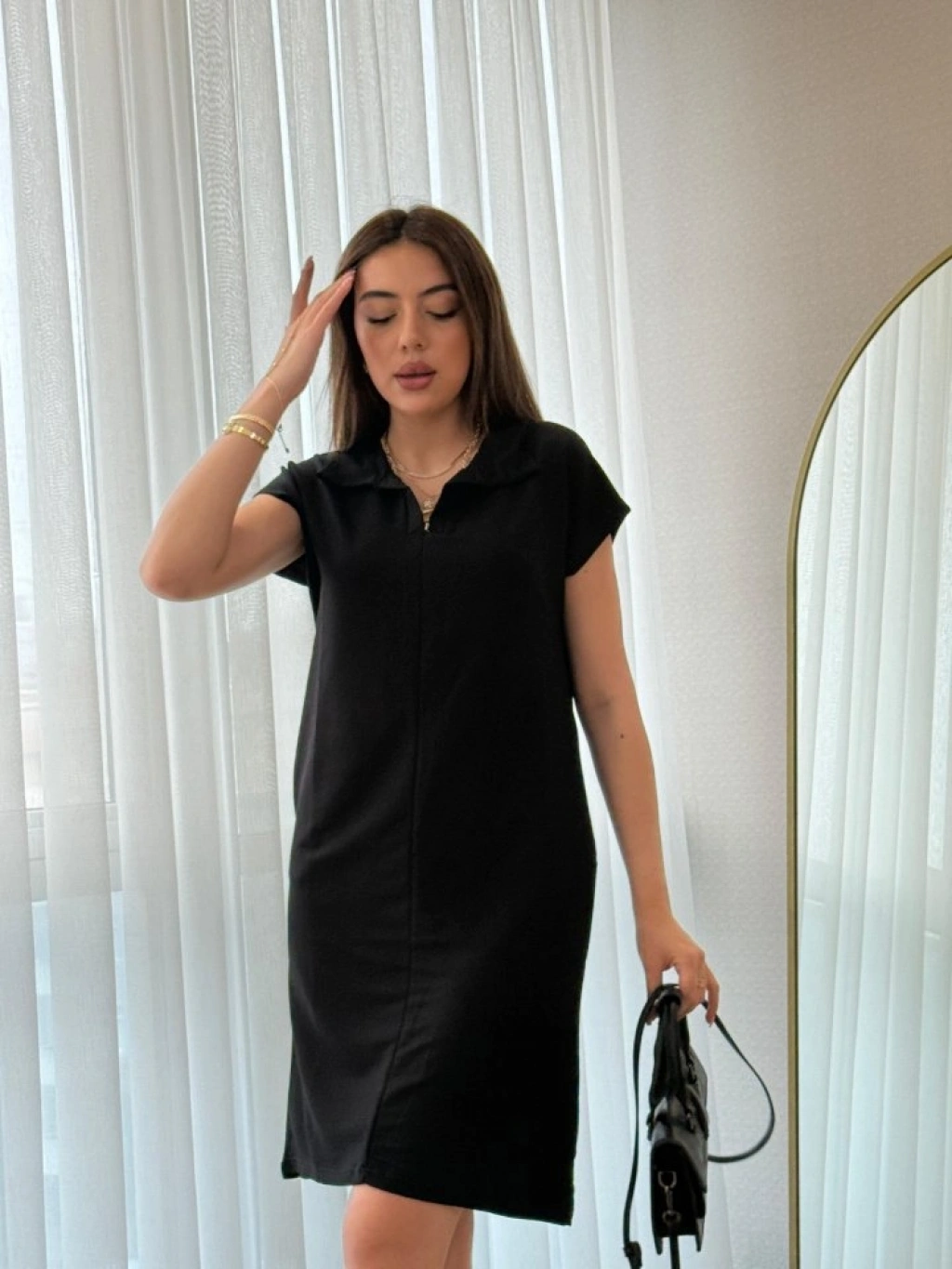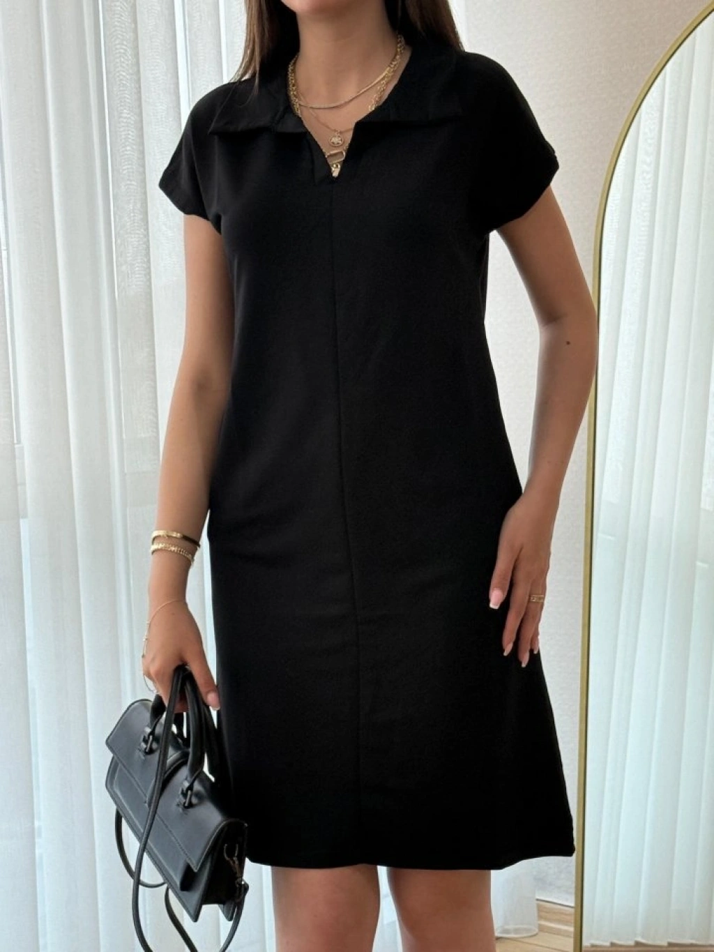 Kadın Kısa Kollu Yakalı Viskon Iki Iplik Elbise