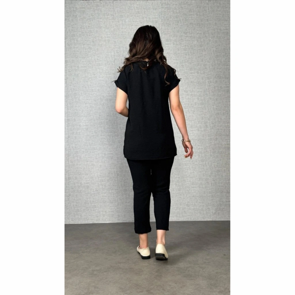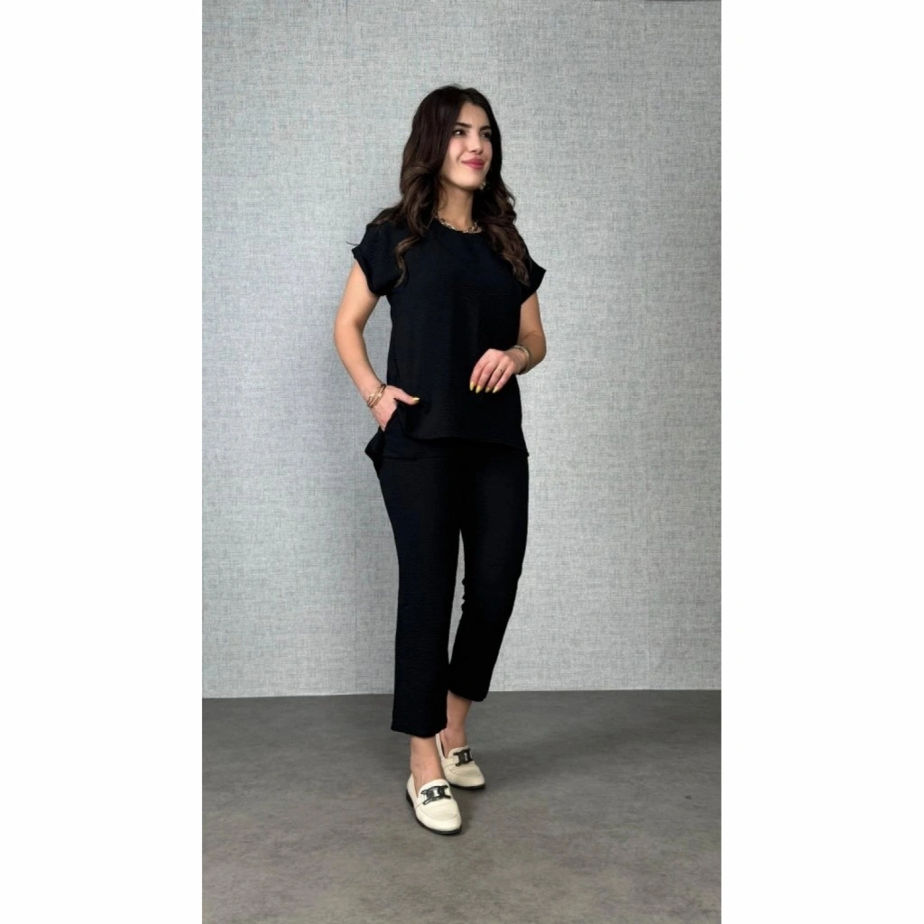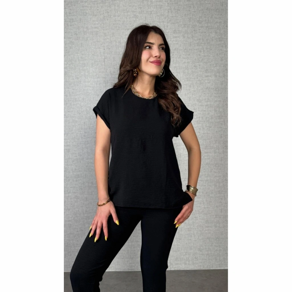 Kadın Kısa Kollu Yuvarlak Yaka Aerobin Bluz Ve Pantolon Ikili Takım