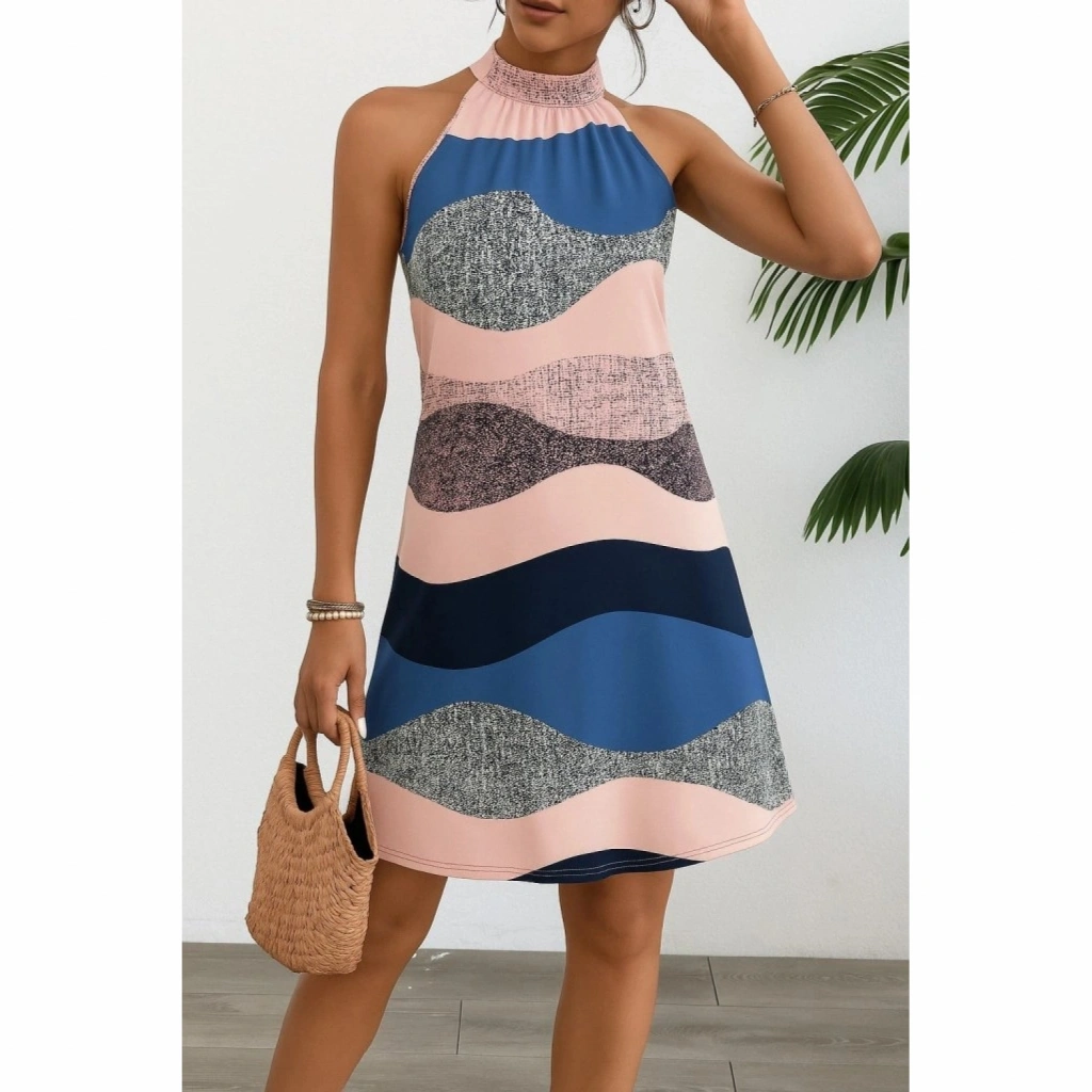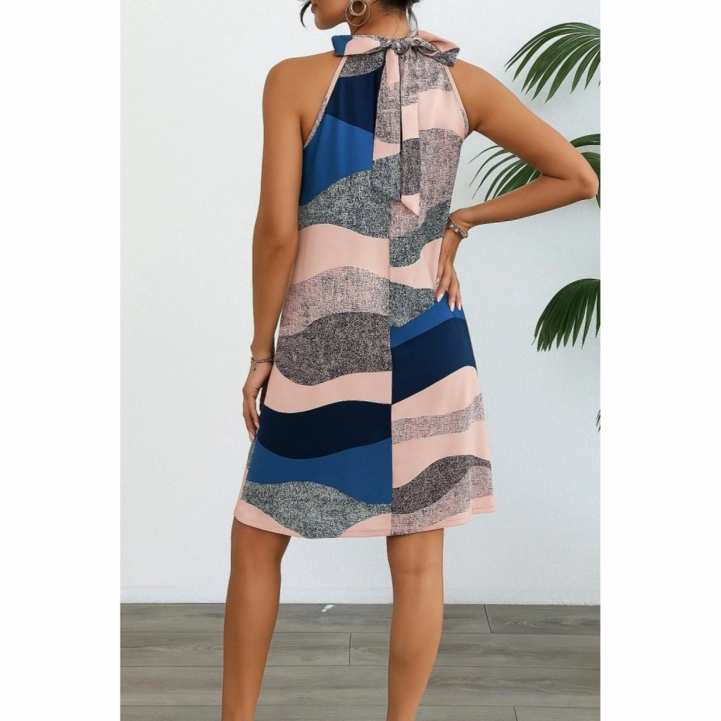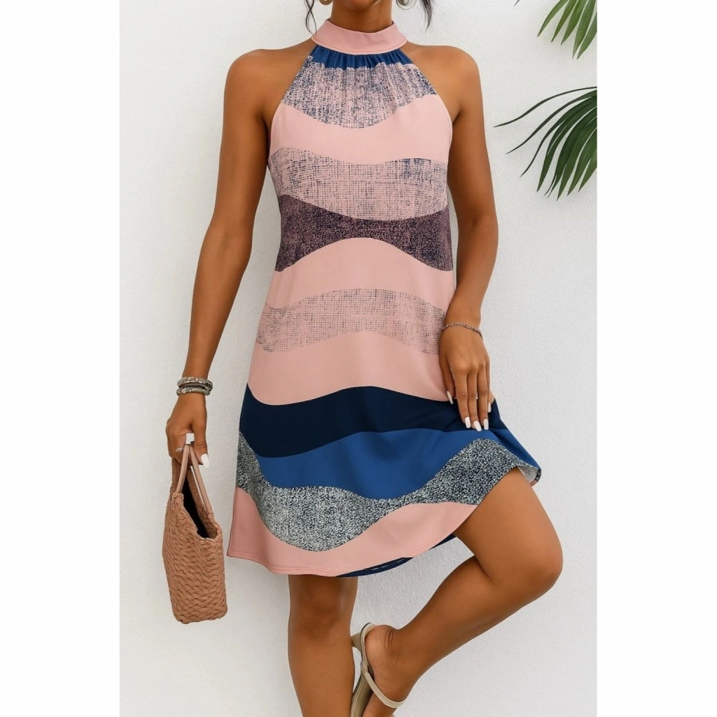 Kadın Kolsuz Boyundan Askılı Desenli Midi Süprem Elbise