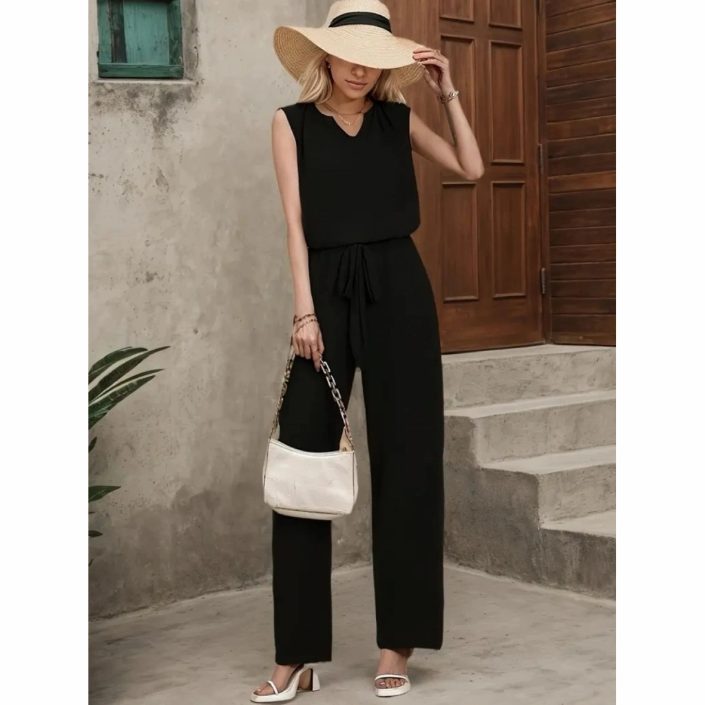Kadın Kolsuz V Yakalı Aerobin Bluz Ve Belden Kuşaklı Pantolon Ikili Takım