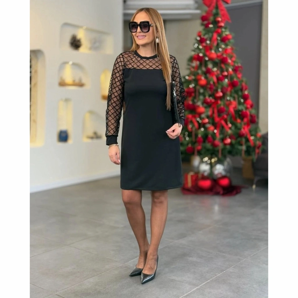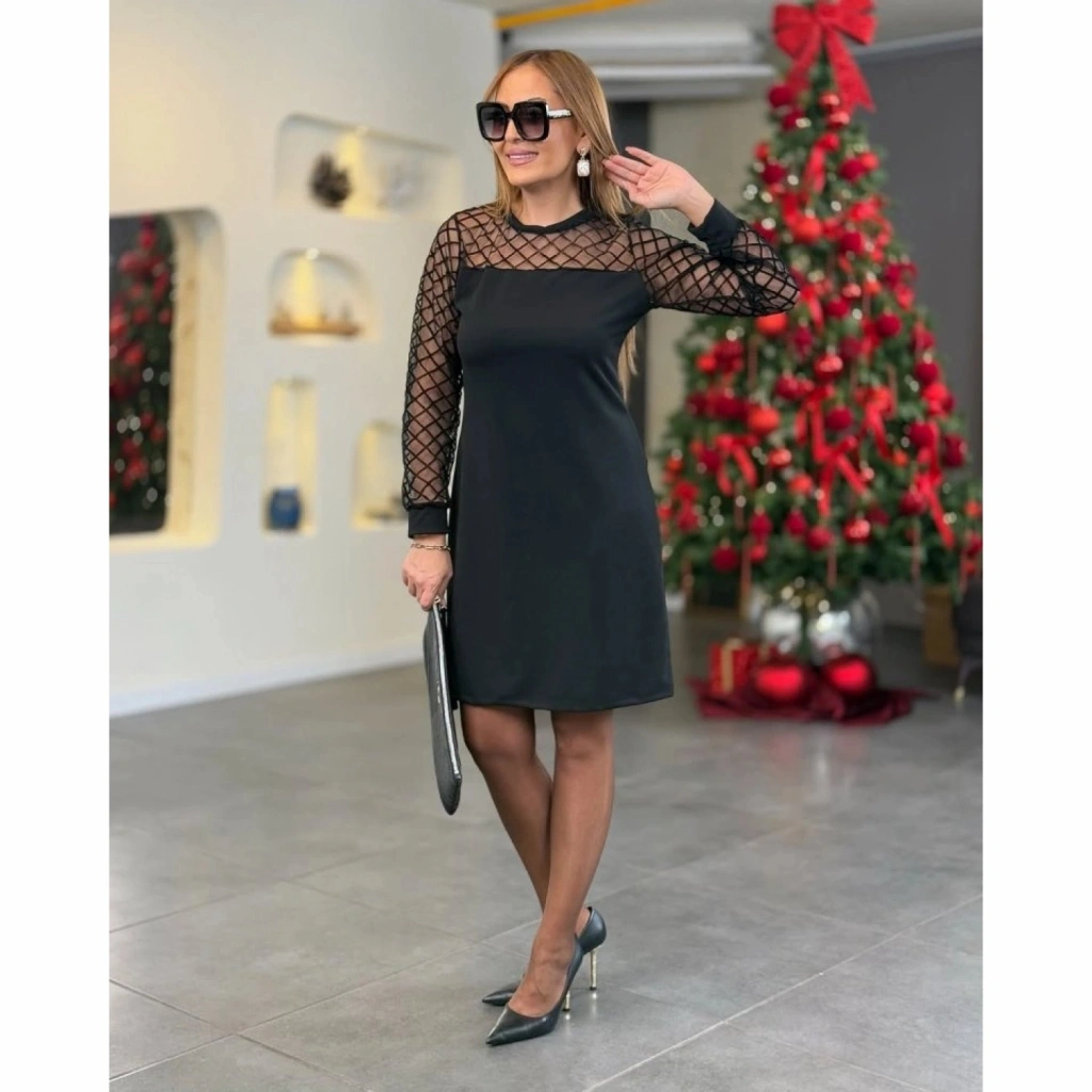 Kadın Krep Kumaş Flok Detaylı Elbise