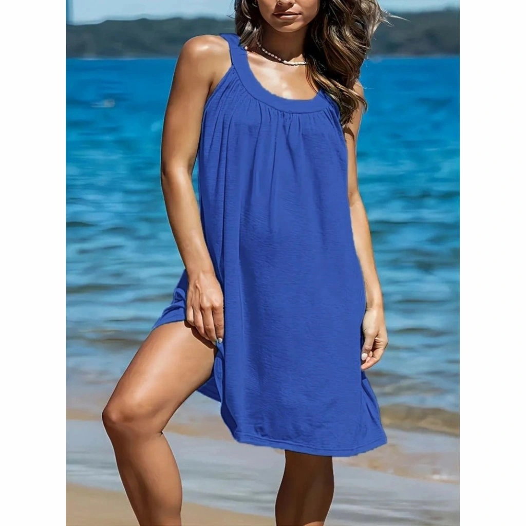 Kadın Omuzlardan Açık Yuvarlak Yaka Pileli Viskon Elbise