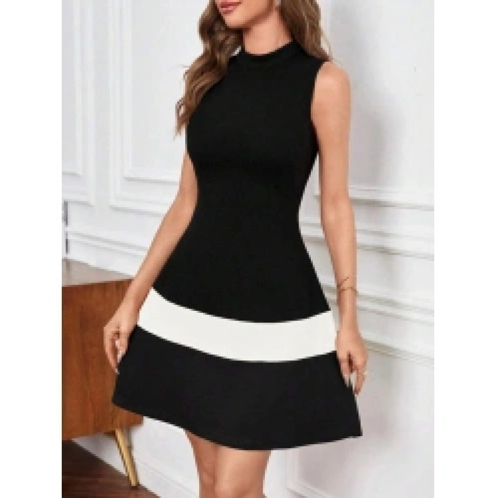 Kadın Sıfır Kol Yarı Balıkçı Yaka şerit Detaylı Ithal Krep Elbise