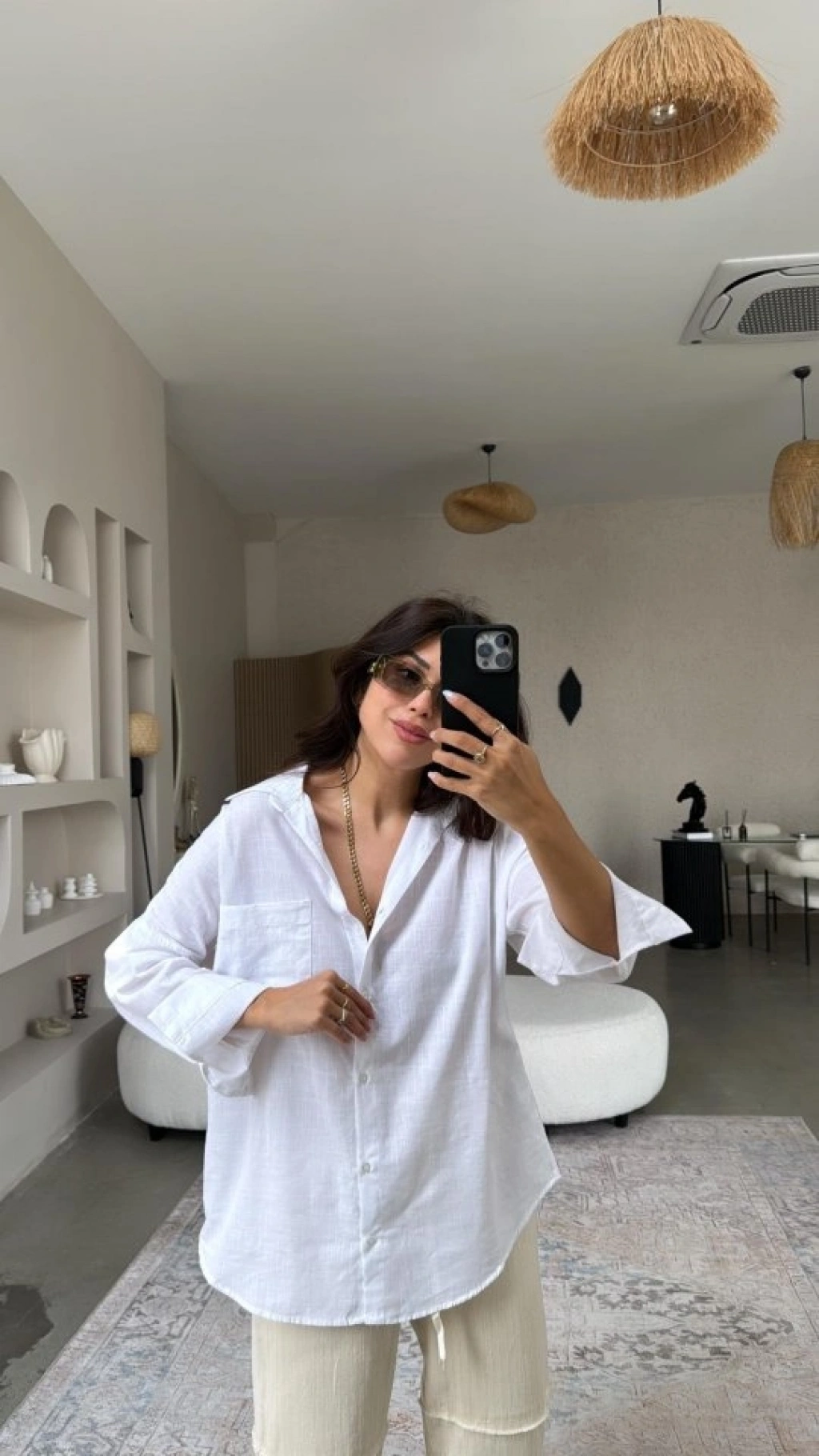 Kadın Tek Cepli Over Size Ketem Gömlek