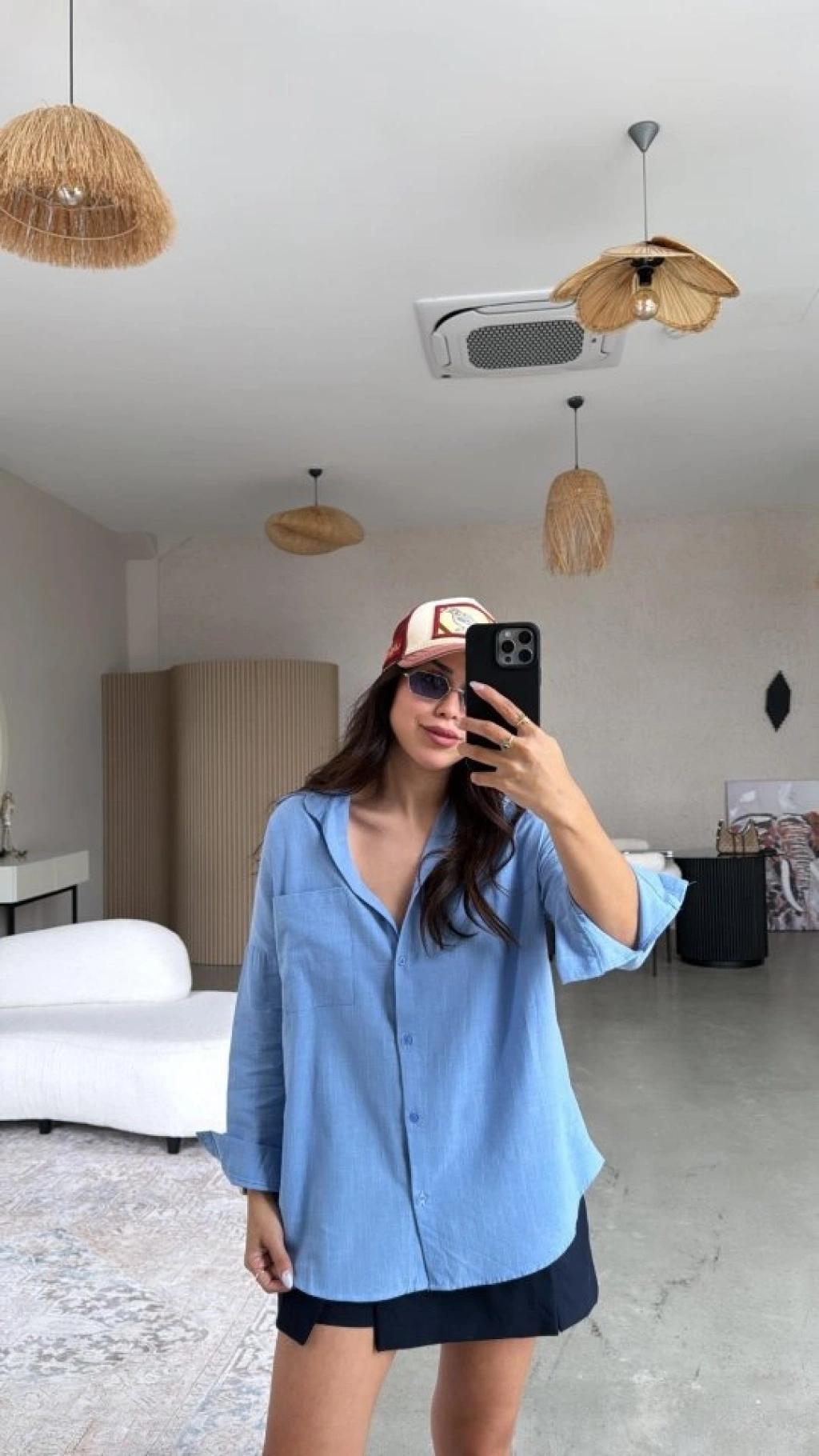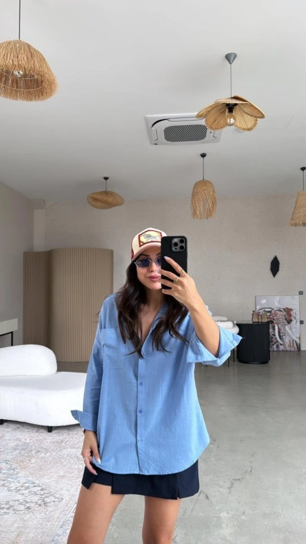 Kadın Tek Cepli Over Size Ketem Gömlek