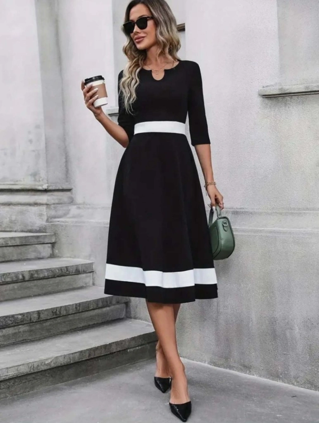 Kadın Truvakar Kol V Yakalı Janjan Krep Midi Elbise