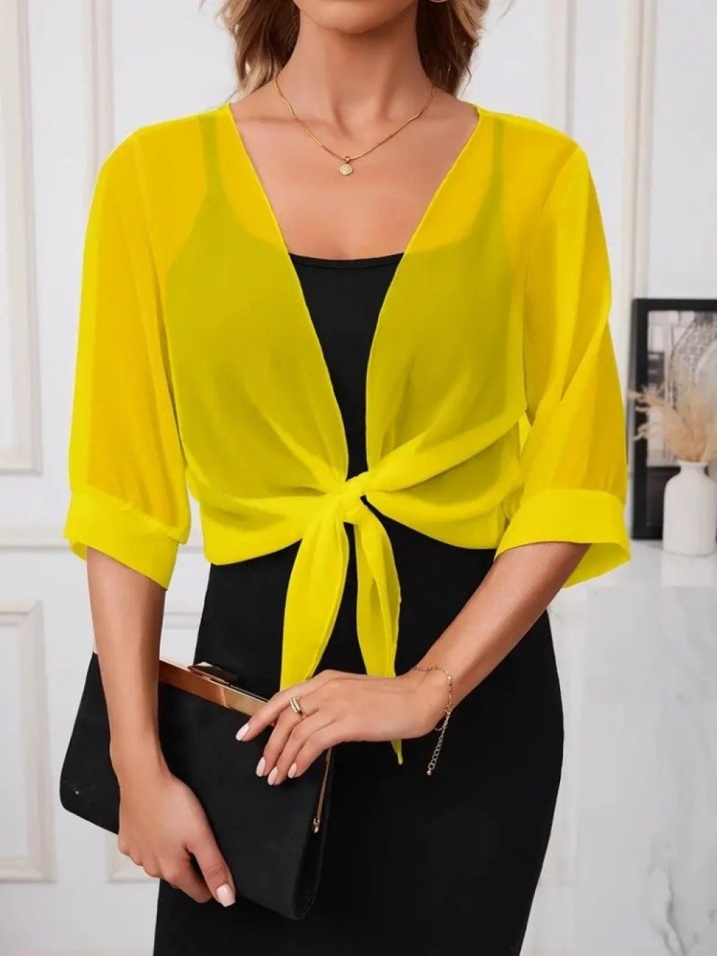 Kadın Truvakar Kollu önden Bağlamalı Kısa şifon Bolero Ceket