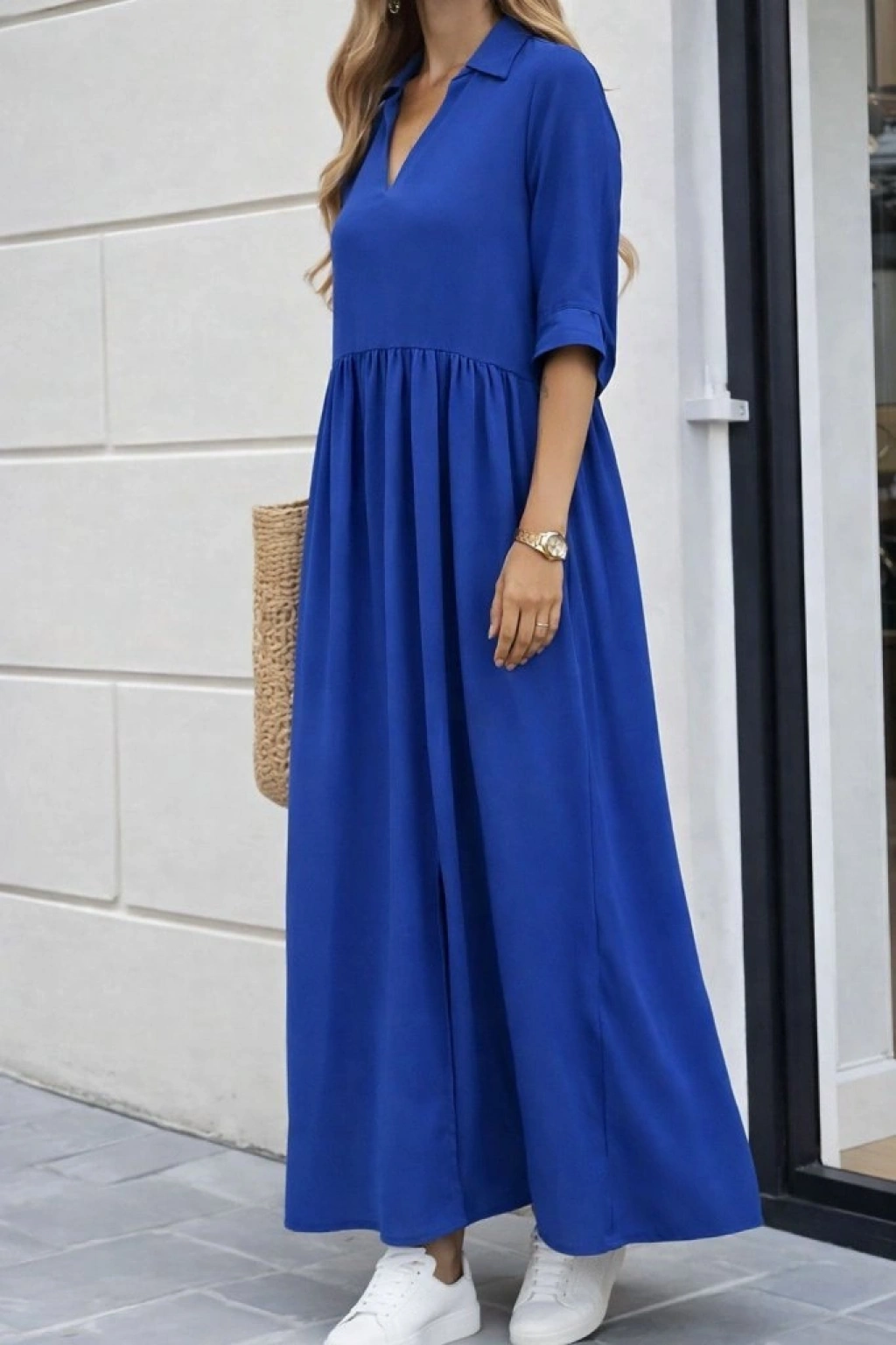 Kadın Truvakar Kollu V Yakalı Yırtmaçlı Uzun Aerobin Elbise