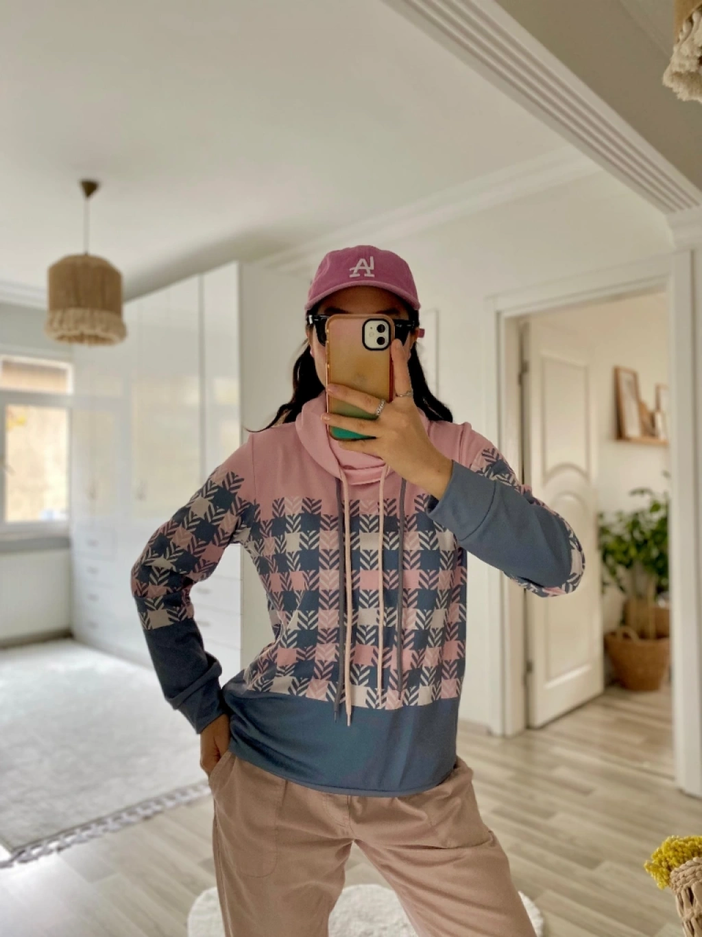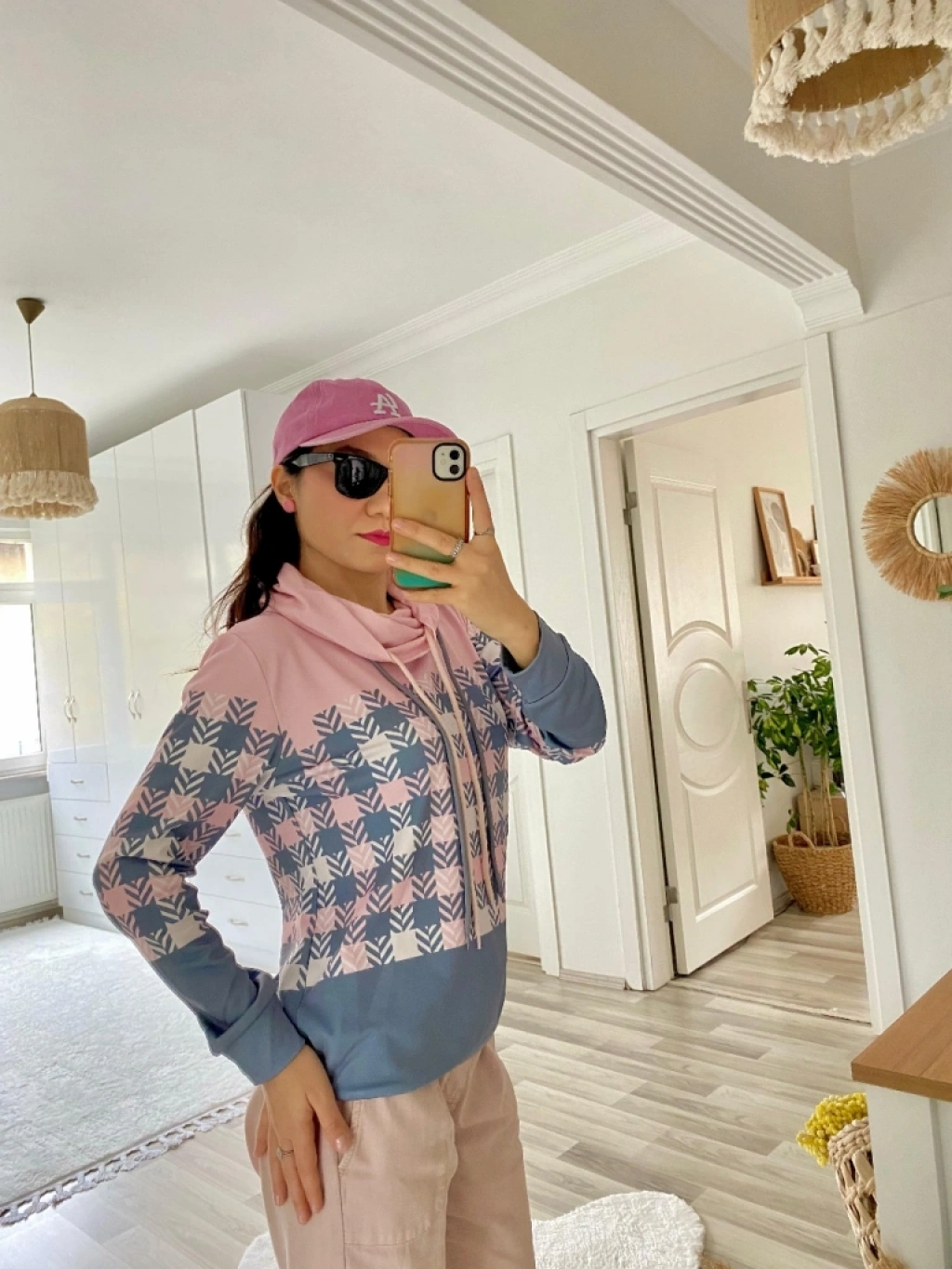 Kadın Uzun Kollu Balıkçı Yaka Bağcıklı Desenli şardonlu Dalgıç Bluz
