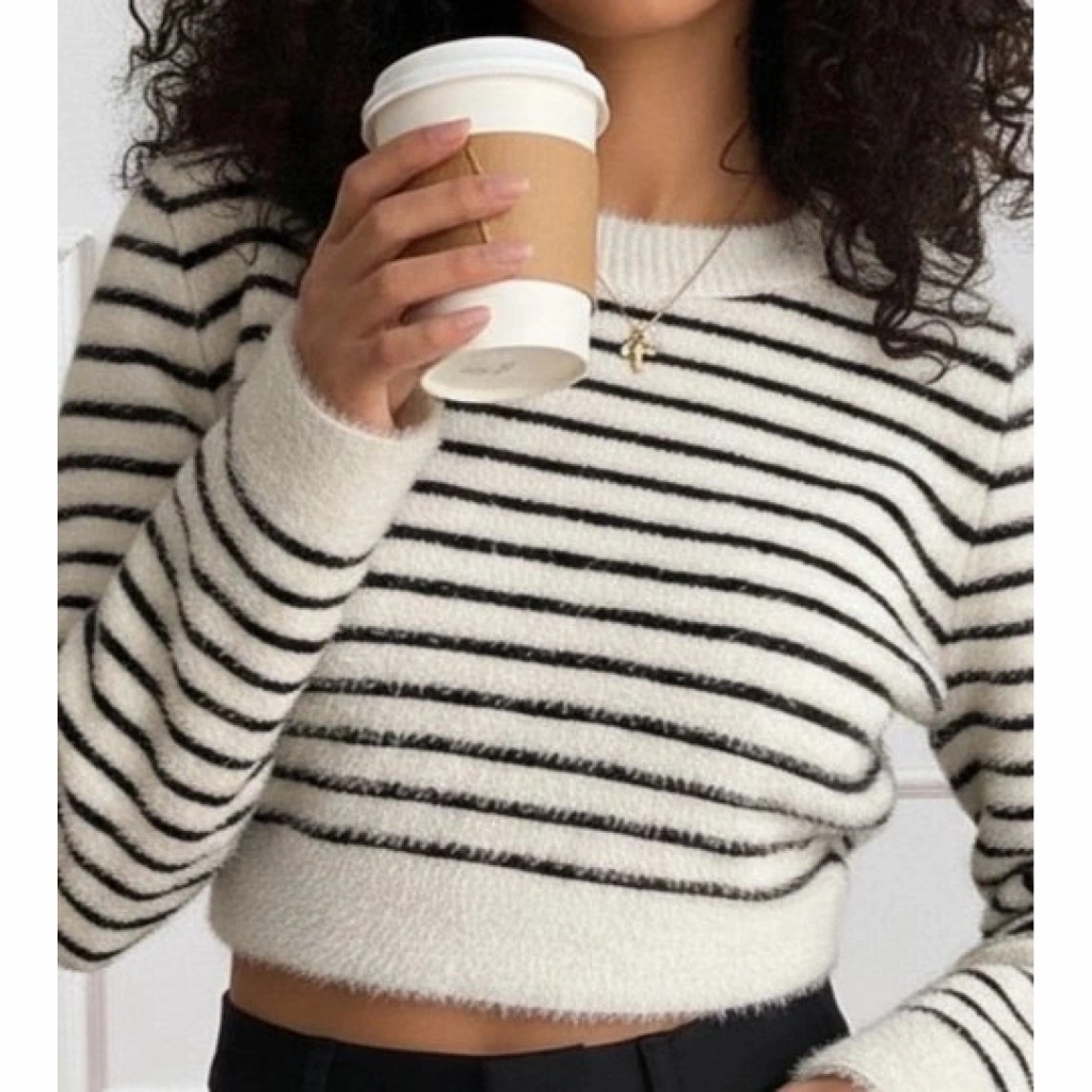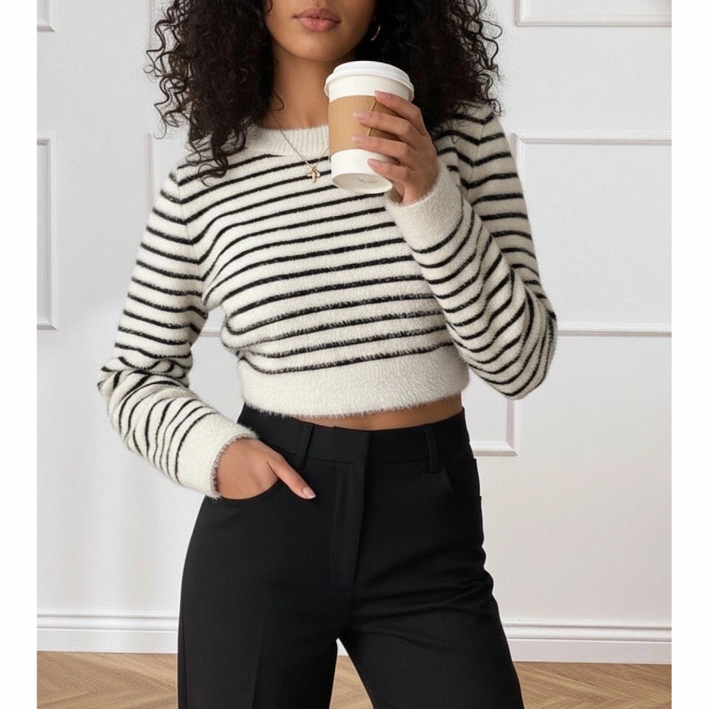 Kadın Uzun Kollu Balıkçı Yaka Crop Triko Bluz