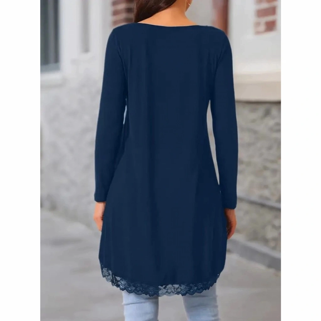 Kadın Uzun Kollu Bisiklet Yaka Asimetrik Kesim Detaylı Dantelli Viskon Bluz