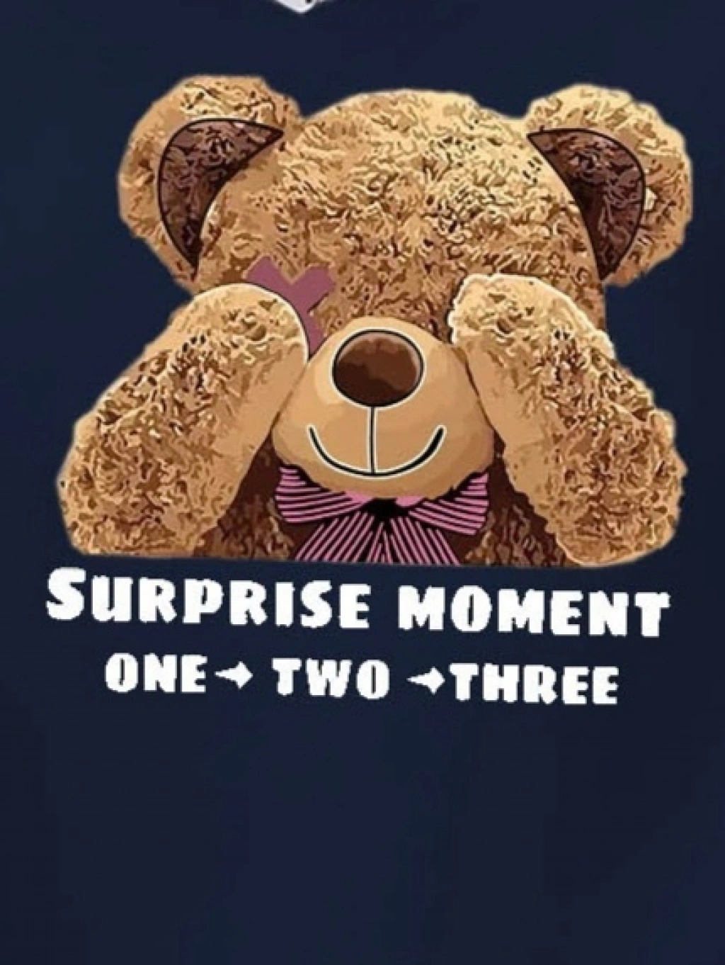 Kadın Uzun Kollu Bisiklet Yaka Ayıcık Desenli Viskon Iki Iplik Bluz