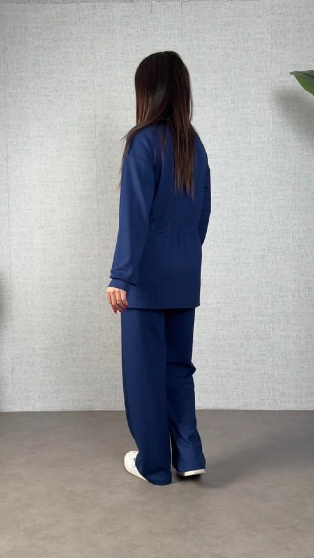 Kadın Uzun Kollu Bisiklet Yaka Belden Büzgülü Bağcıklı Viskon Iki Iplik Bluz Ve Pantolon Ikili Takım