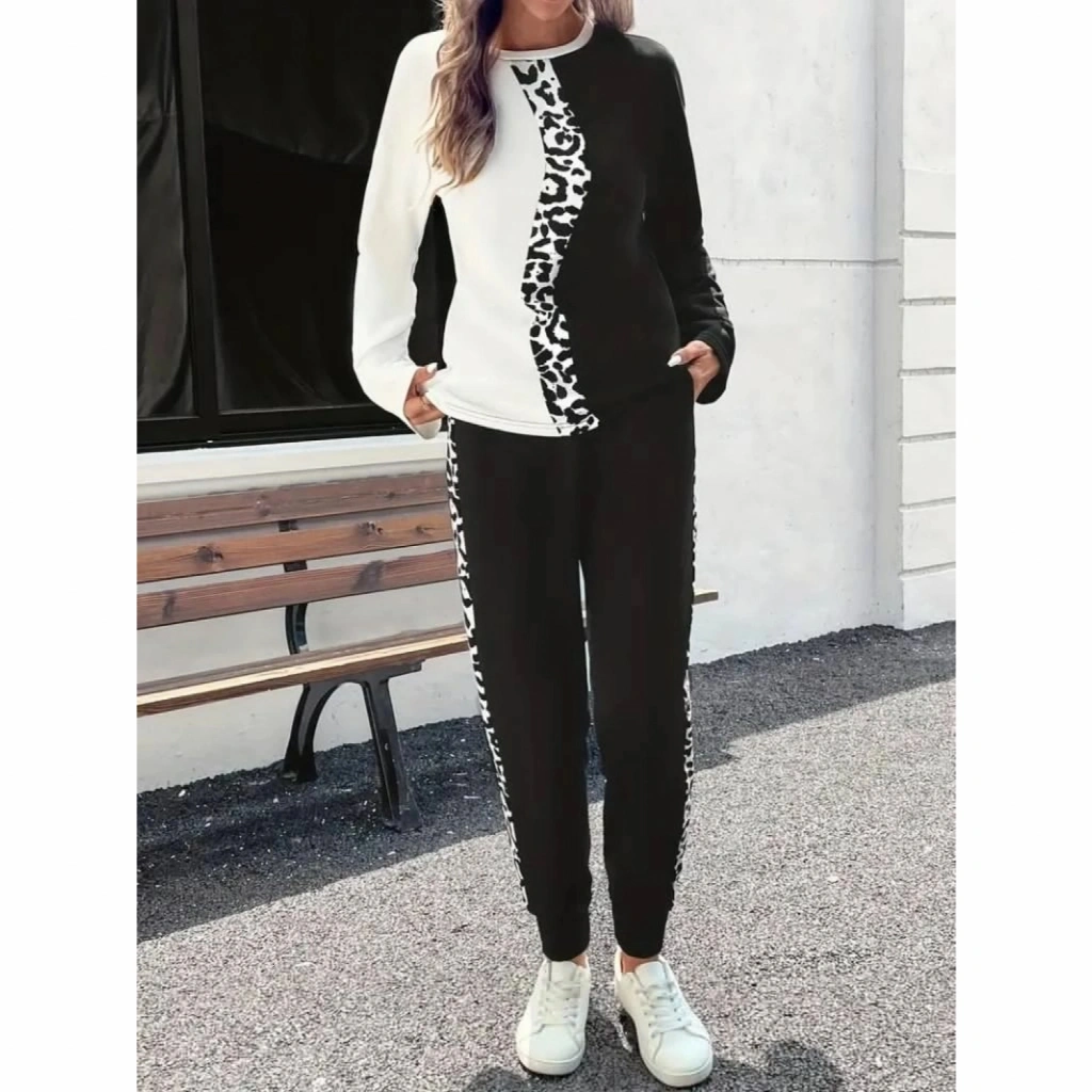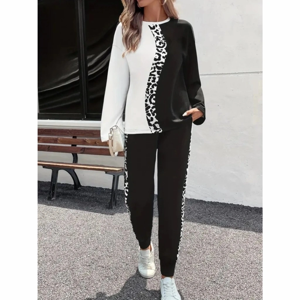 Kadın Uzun Kollu Bisiklet Yaka çift Renkli Viskon Iki Iplik Bluz Ve Pantolon Ikili Takım