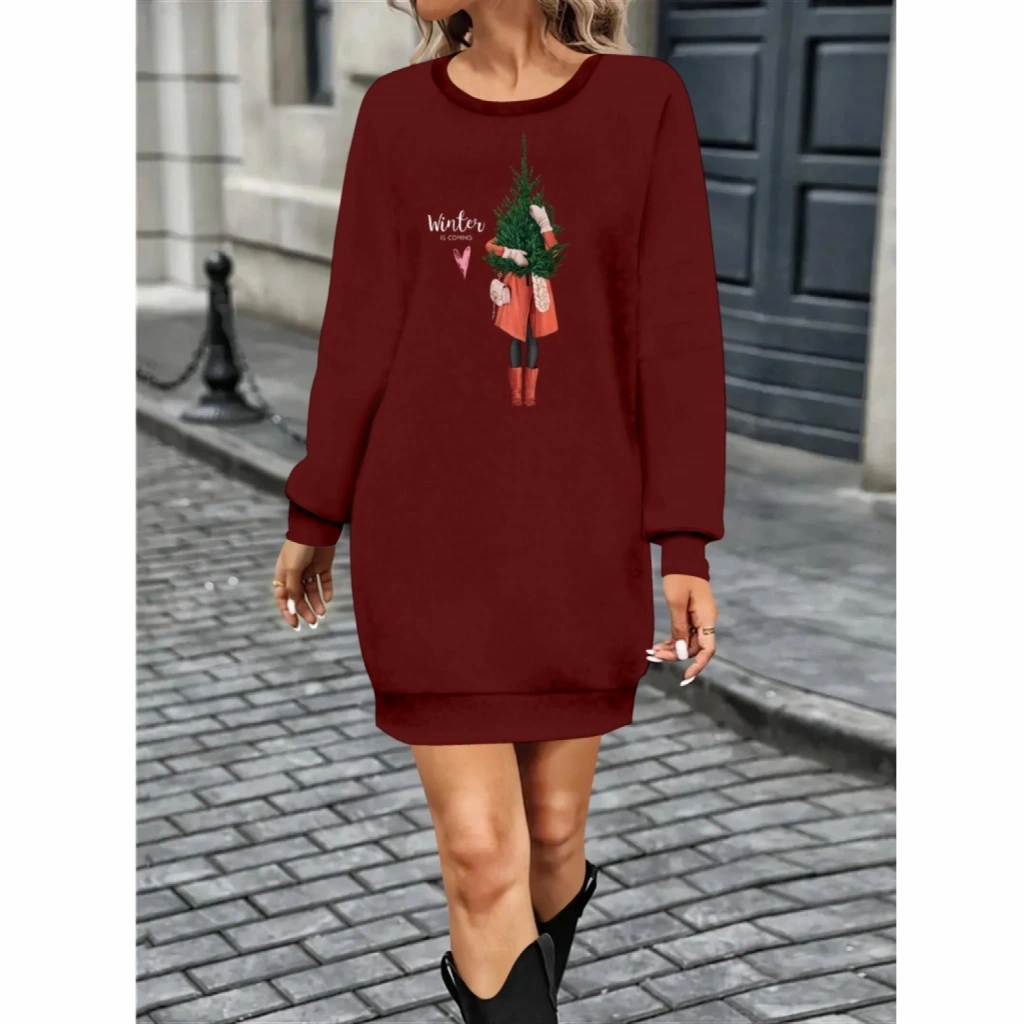 Kadın Uzun Kollu Bisiklet Yaka Desenli Kısa Viskon Iki Iplik Elbise