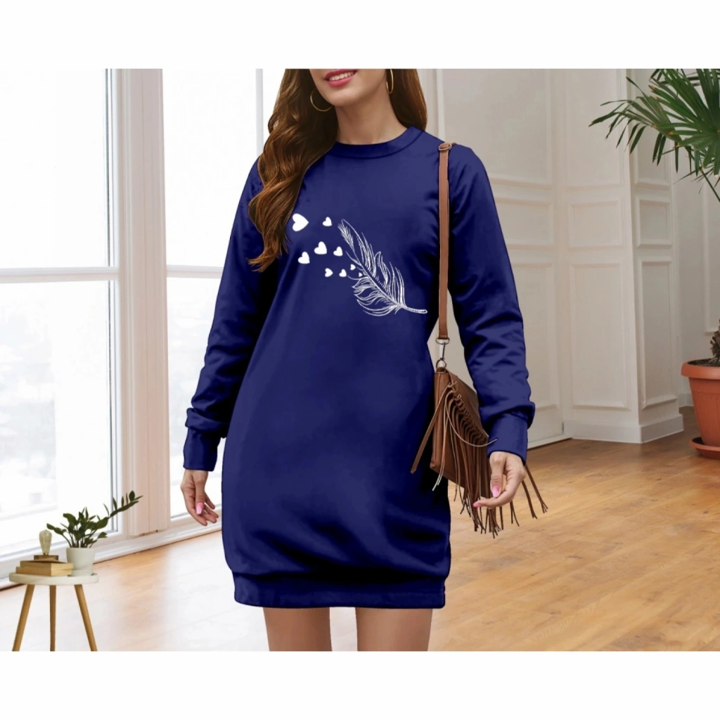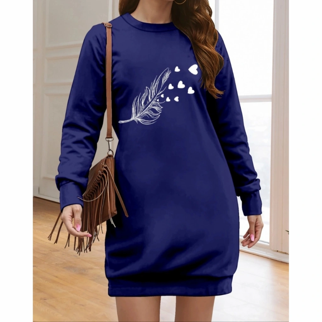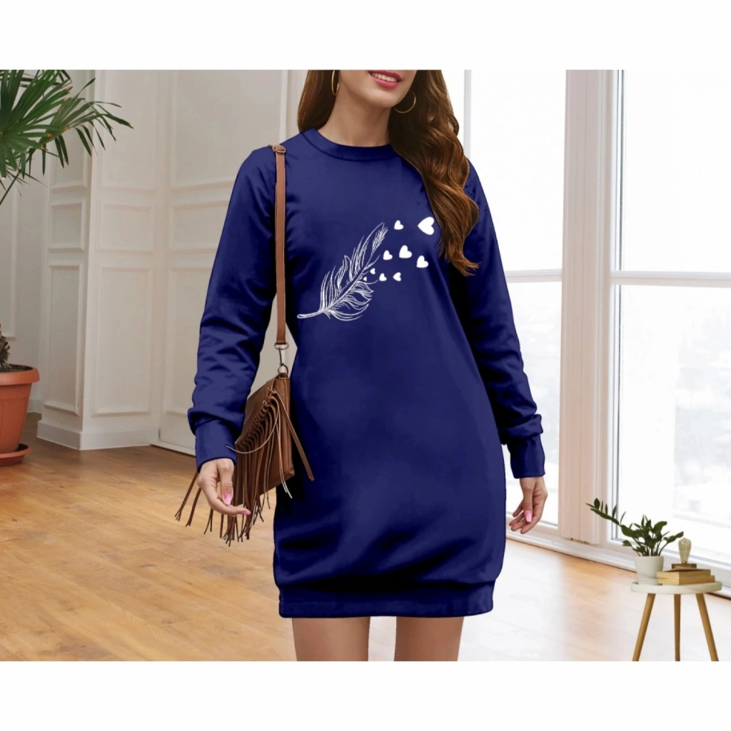 Kadın Uzun Kollu Bisiklet Yaka Desenli Viskon Iki Iplik Elbise