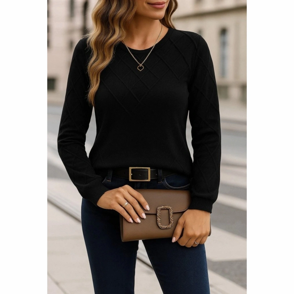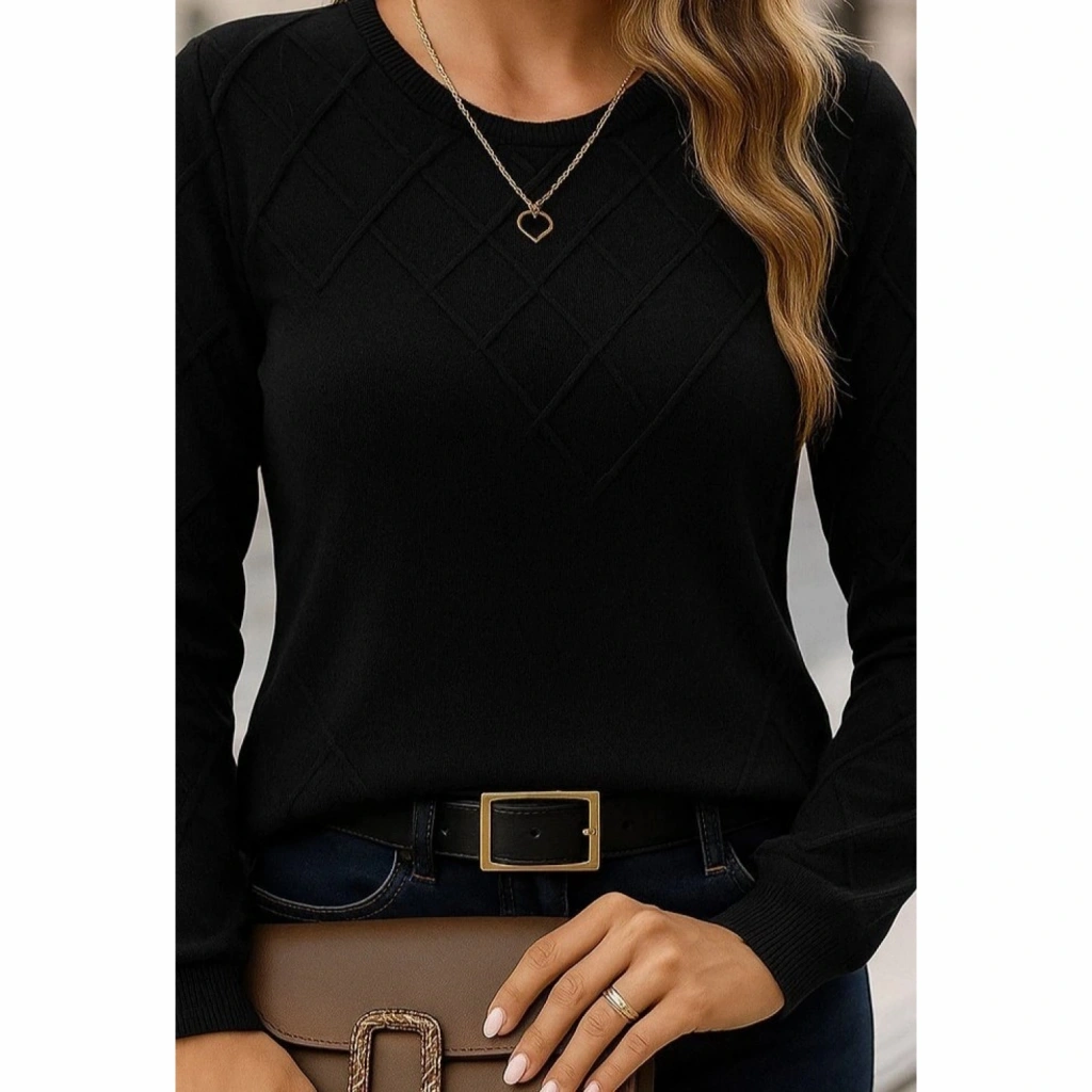 Kadın Uzun Kollu Bisiklet Yaka Geometrik Desenli Triko Bluz