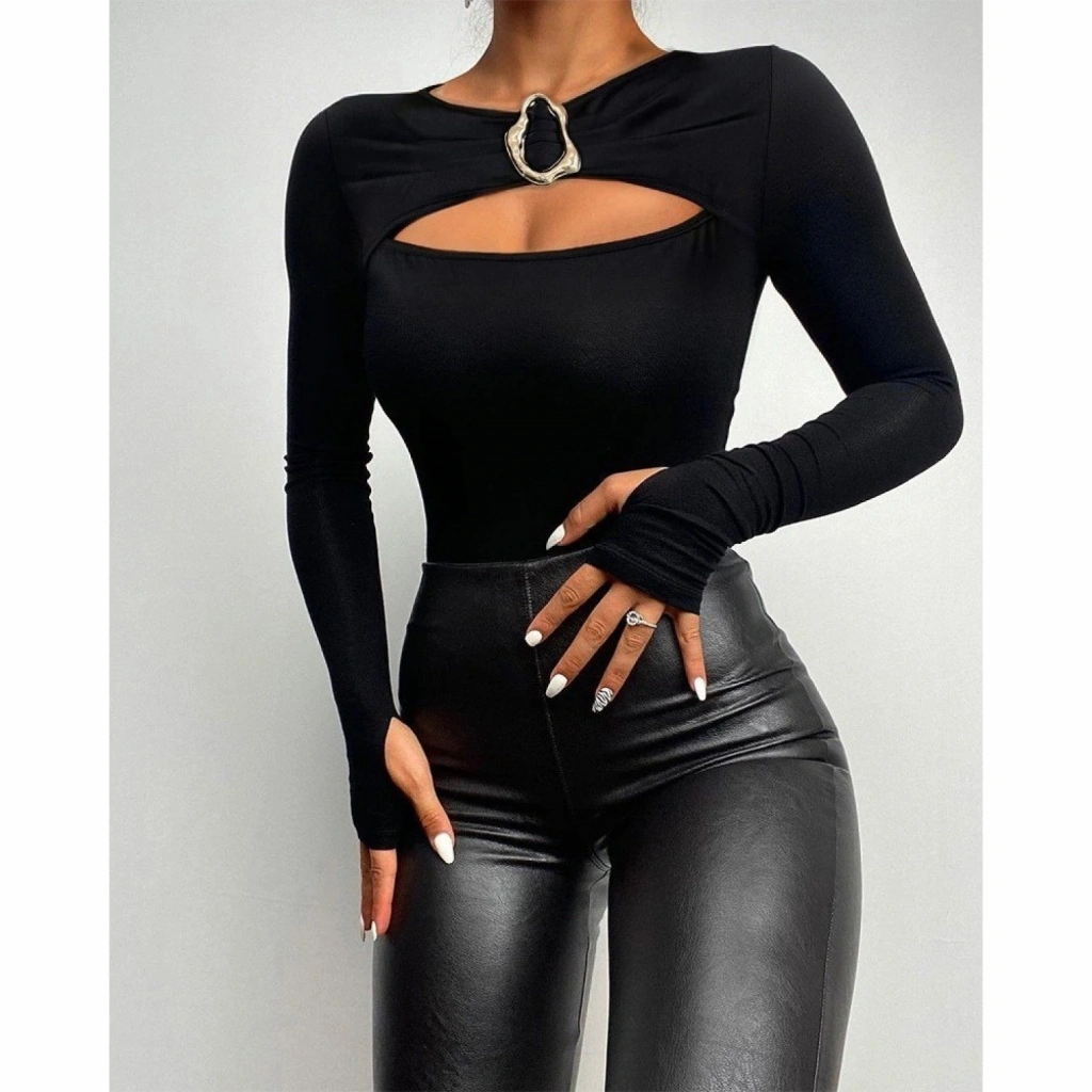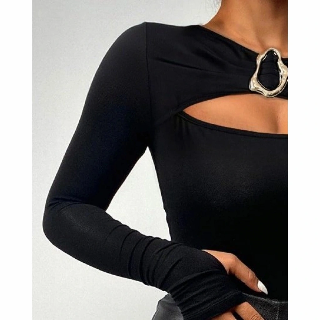Kadın Uzun Kollu Bisiklet Yaka Göğüs Dekolteli Viskon Bluz