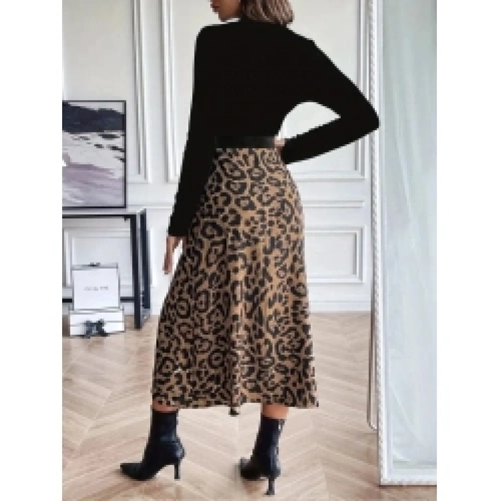 Kadın Uzun Kollu Bisiklet Yaka Ithal Krep Bluz Alt Desenli Modal Midi Elbise