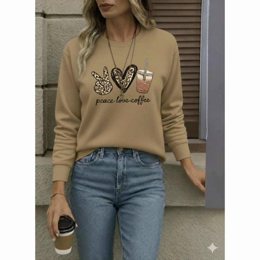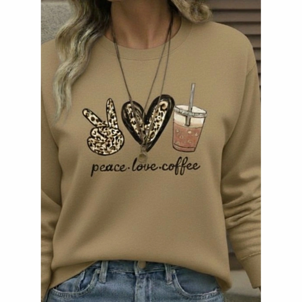 Kadın Uzun Kollu Bisiklet Yaka Kalp Desenli Viskon Iki Iplik Bluz
