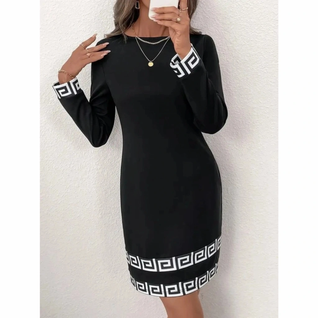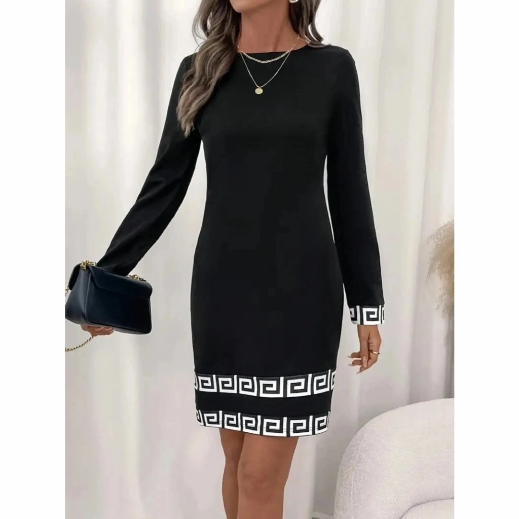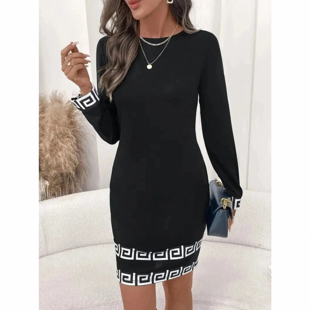 Kadın Uzun Kollu Bisiklet Yaka Mini Ithal Krep Elbise