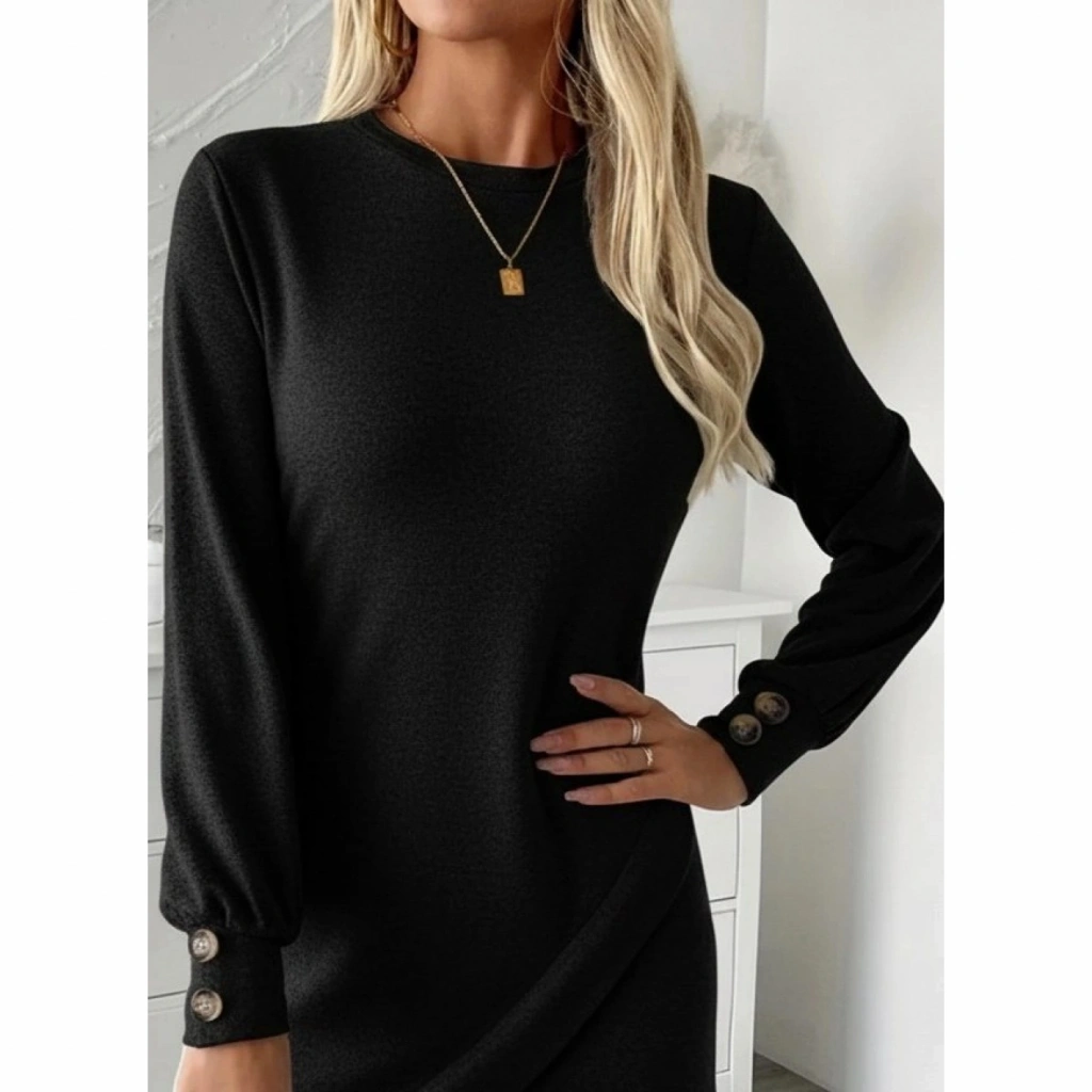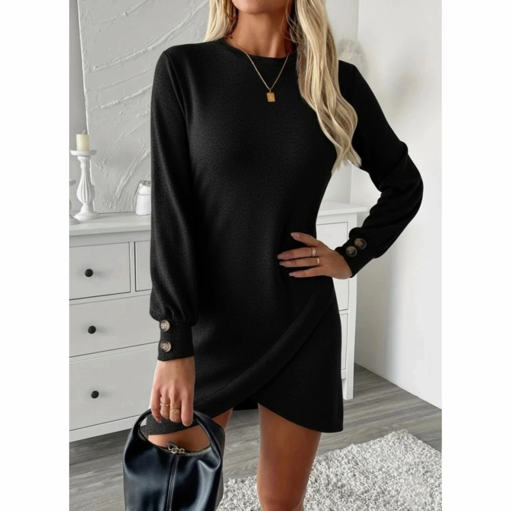 Kadın Uzun Kollu Bisiklet Yaka önden Asimetrik Kesim Detaylı Mini Yumoş Elbise