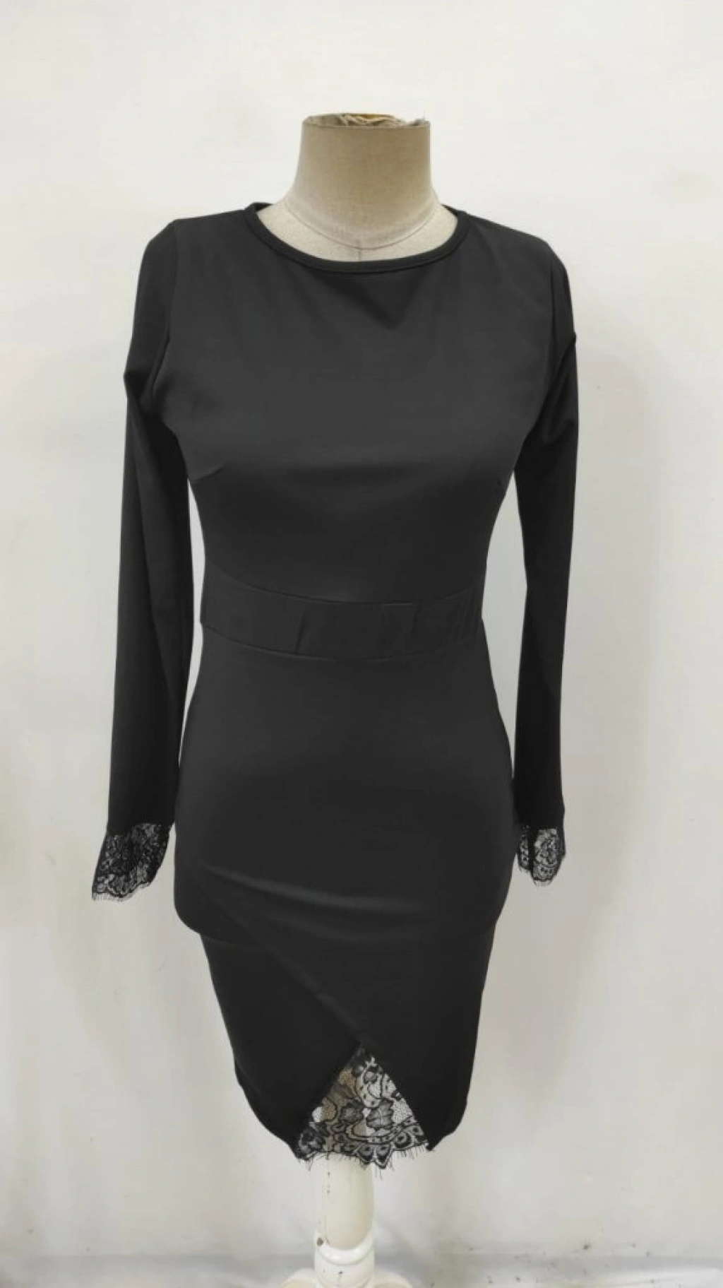 Kadın Uzun Kollu Bisiklet Yaka önden Dantel Ve Yırtmaç Detaylı Dalgıç Elbise
