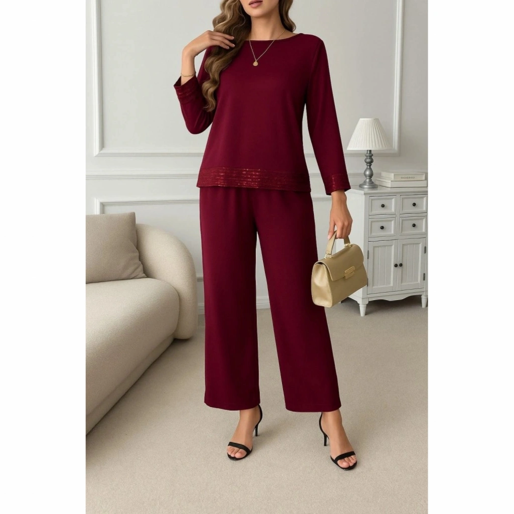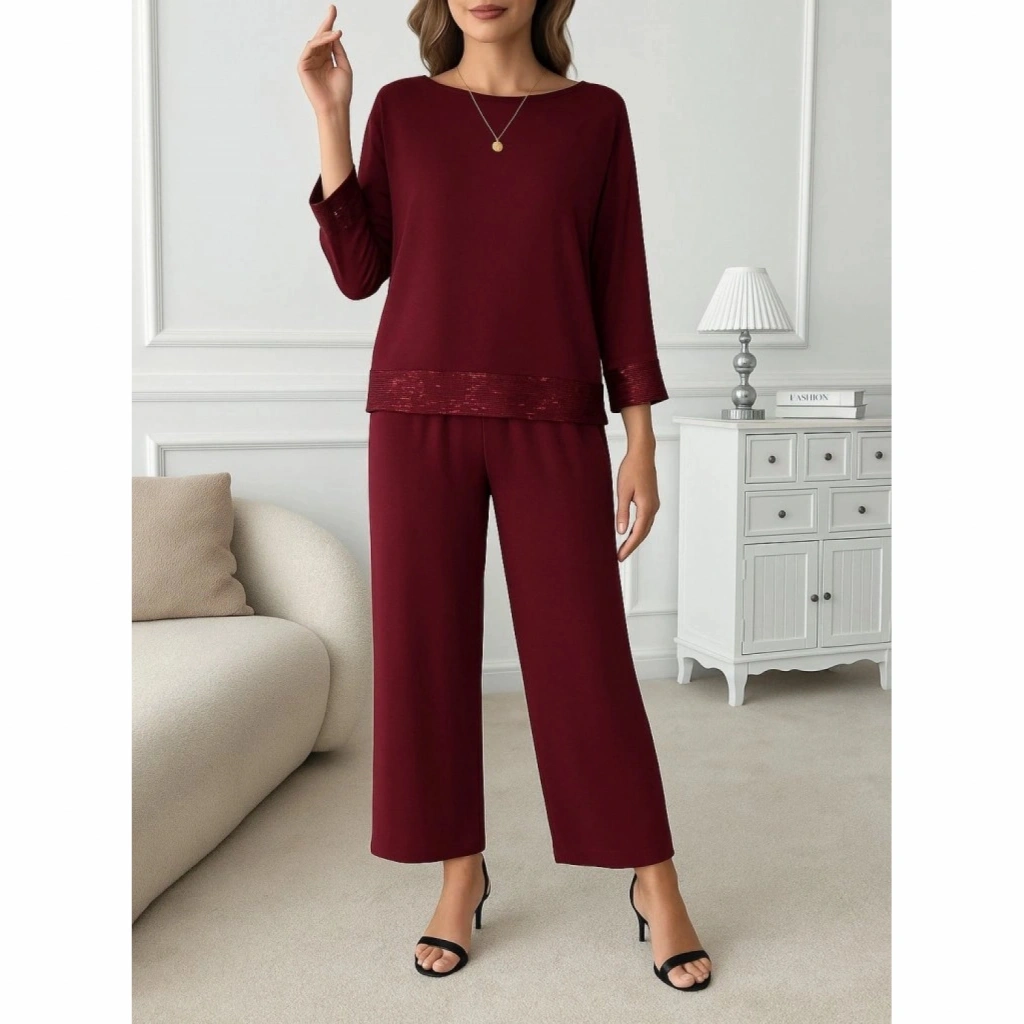 Kadın Uzun Kollu Bisiklet Yaka Pulpayetli Viskon Iki Iplik Bluz Ve Pantolon Ikili Takım