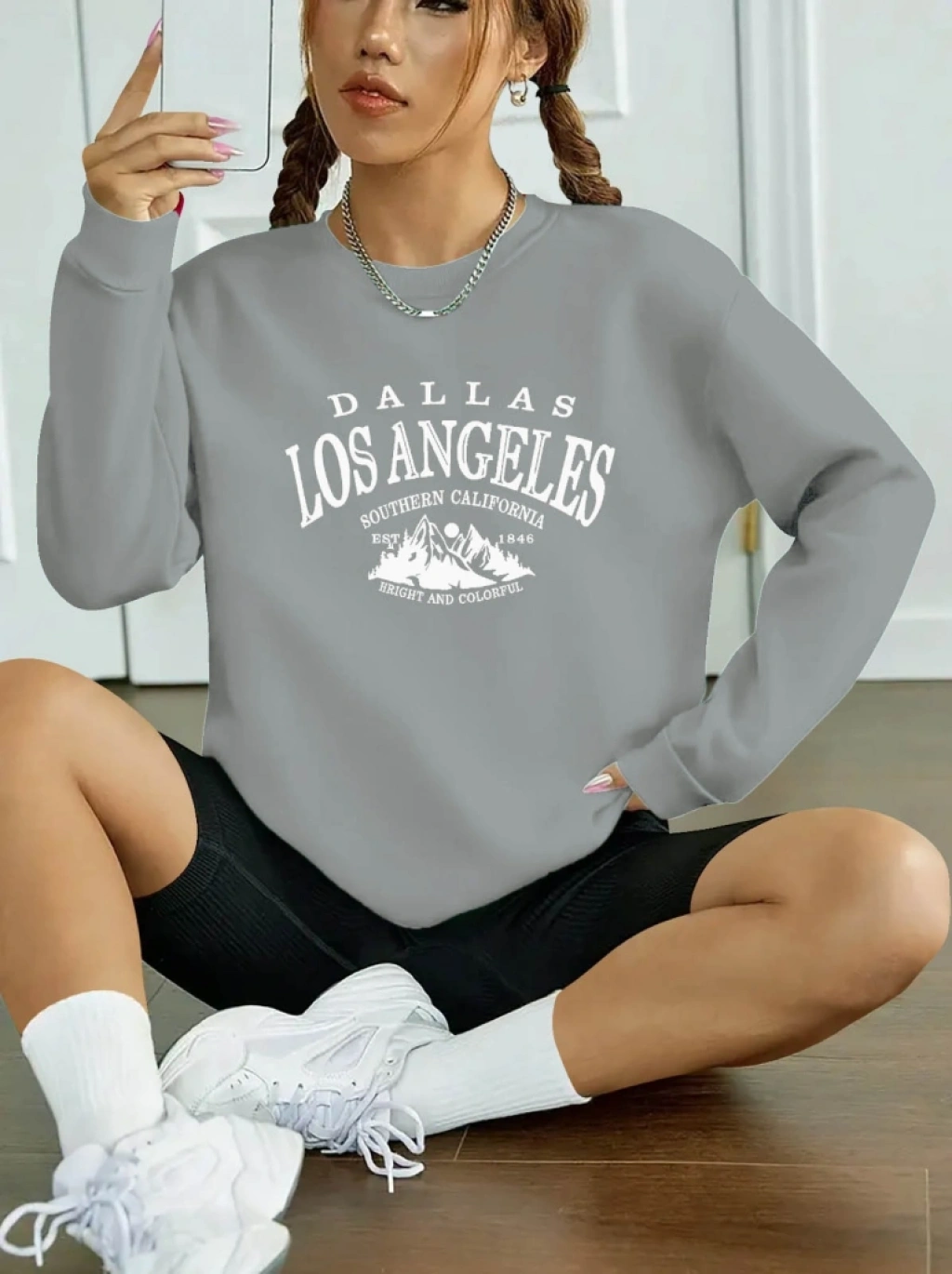 Kadın Uzun Kollu Bisiklet Yaka Viskon Iki Iplik Bluz