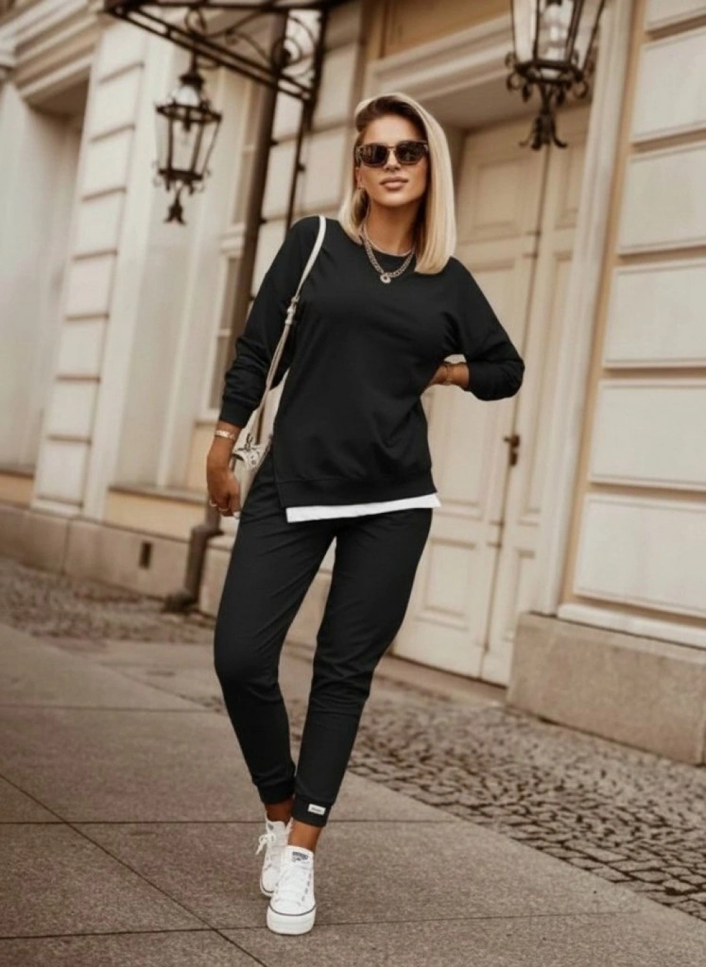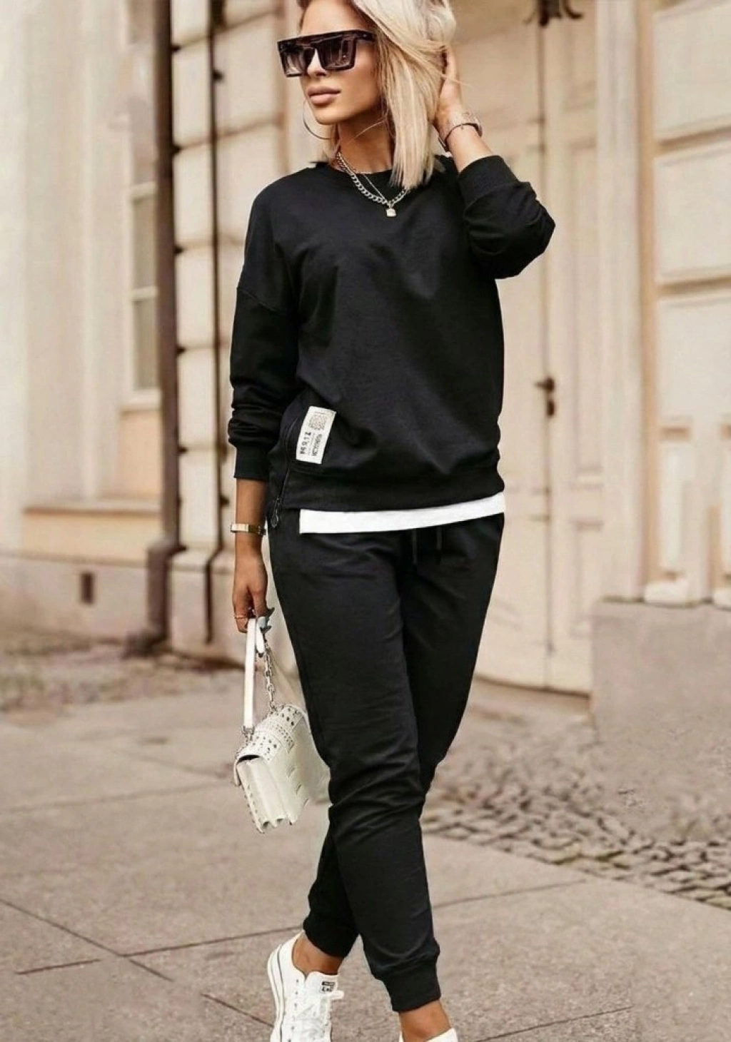 Kadın Uzun Kollu Bisiklet Yaka Yandan Fermuarlı Viskon Iki Iplik Bluz Ve Pantolon Ikili Takım