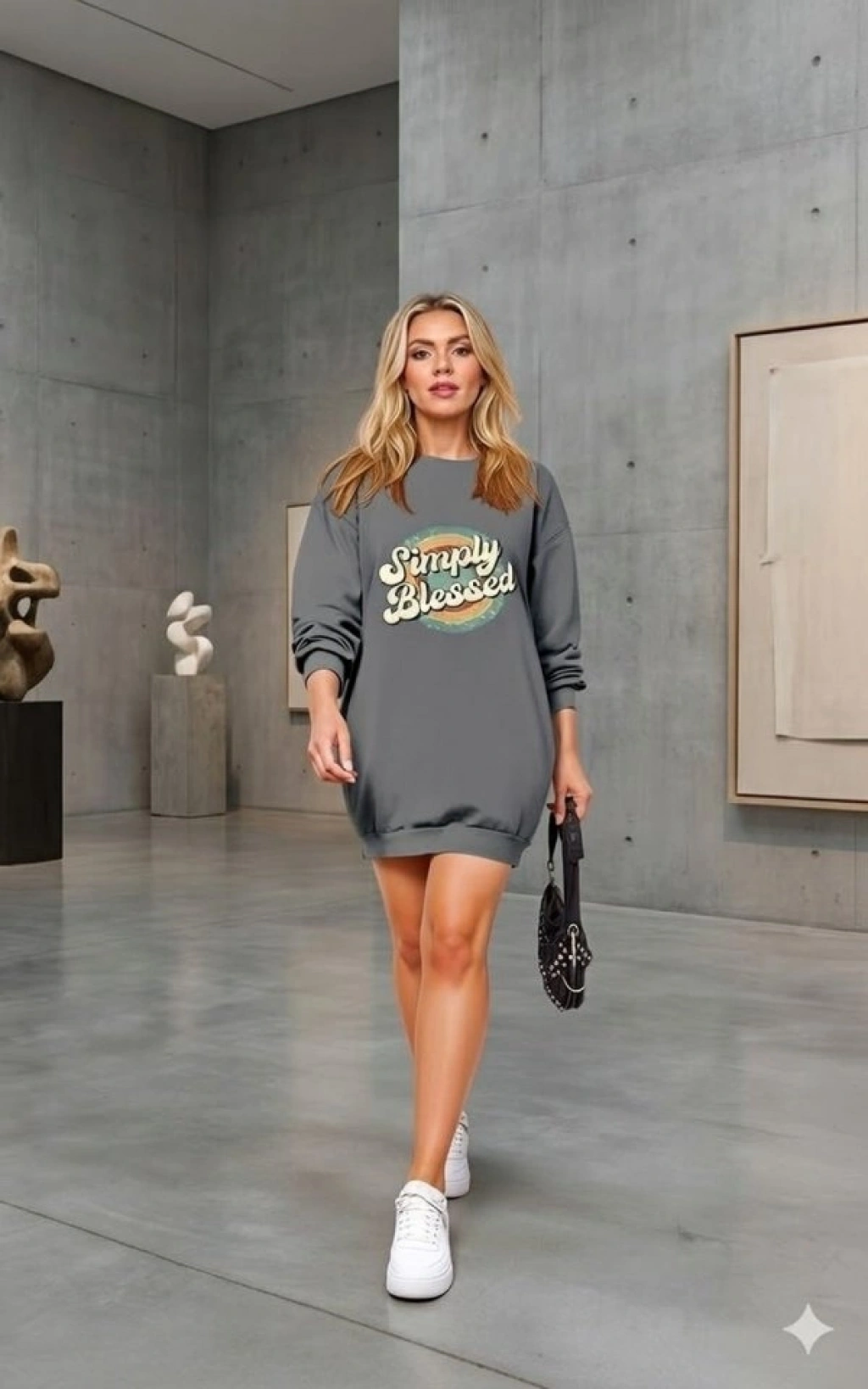 Kadın Uzun Kollu Bisiklet Yaka Yazılı Viskon Iki Iplik Elbise