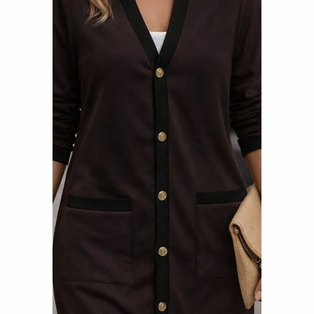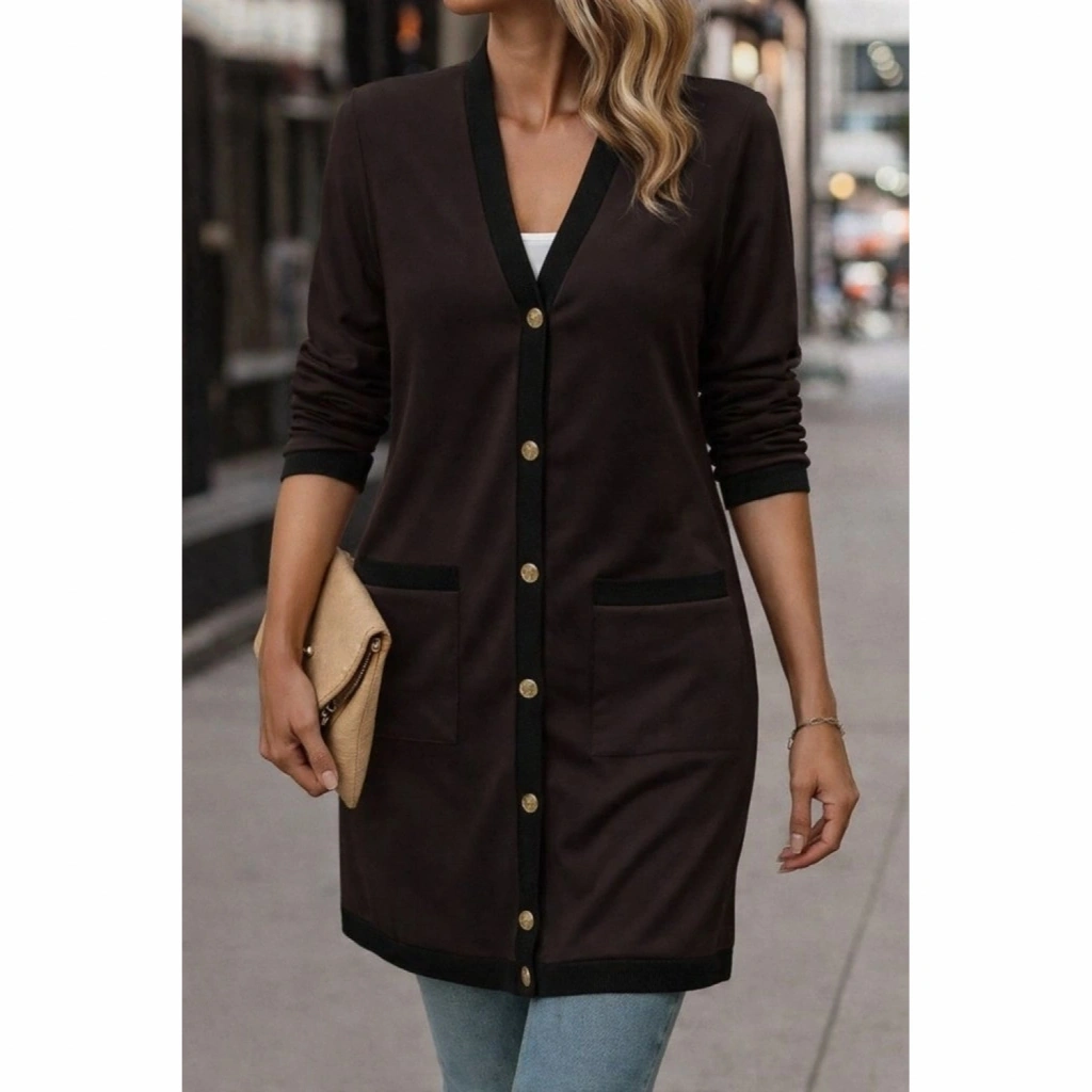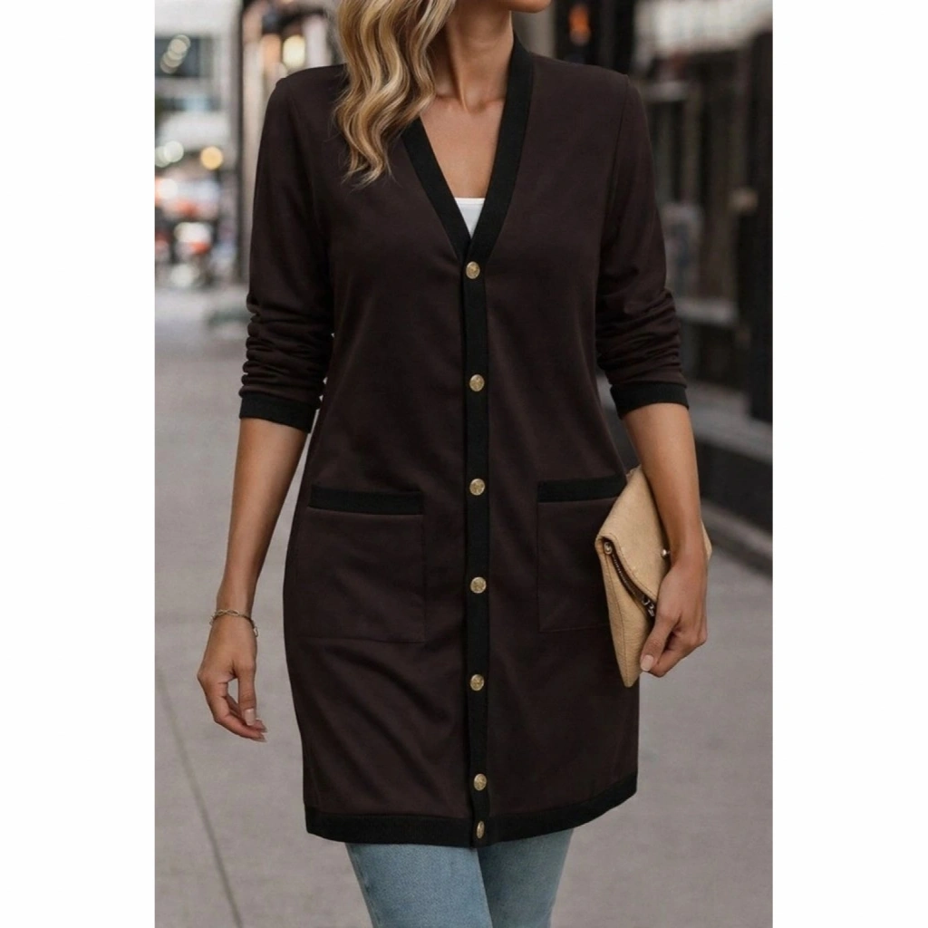 Kadın Uzun Kollu Cepli önden Düğmeli Uzun Modal Ceket Hırka