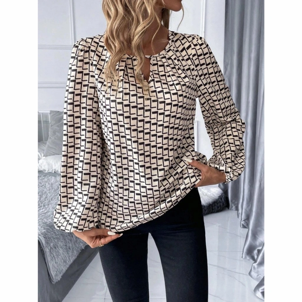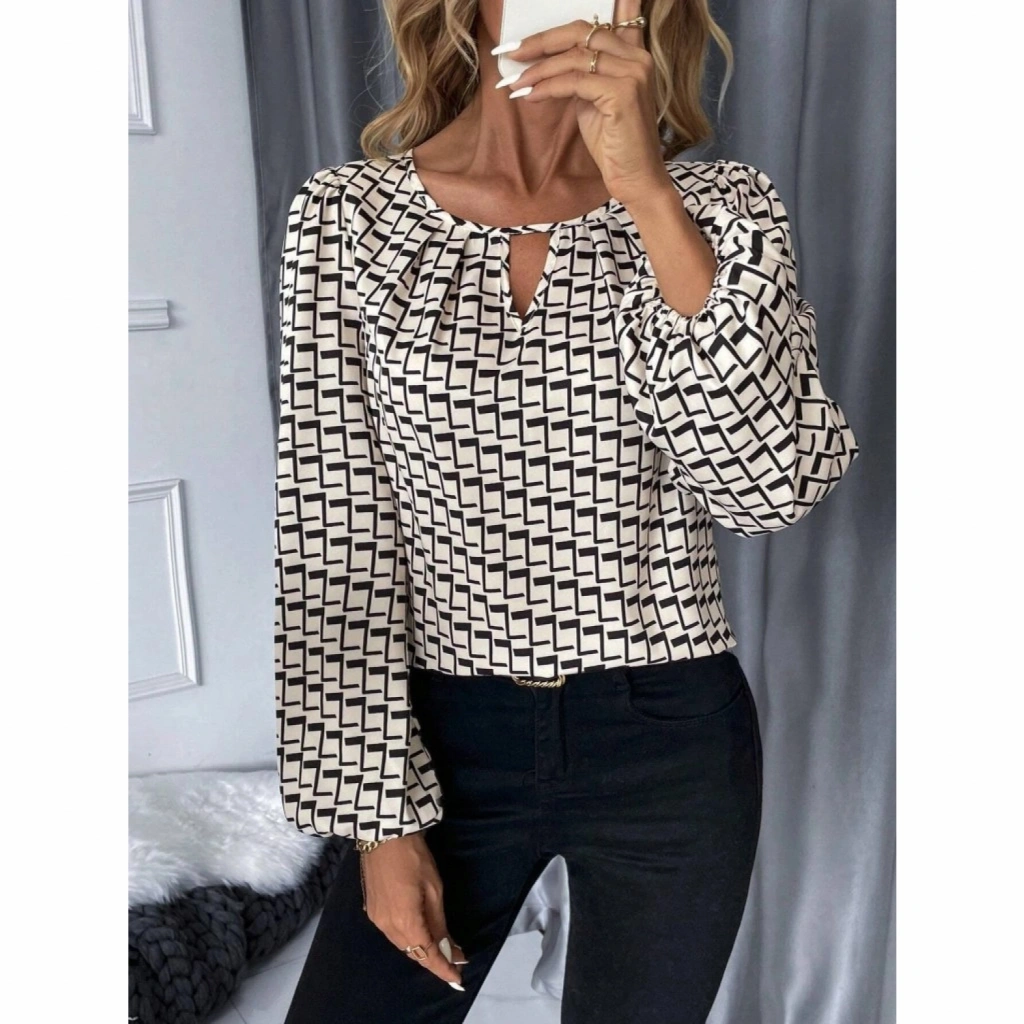 Kadın Uzun Kollu Damla Detaylı Yaka Desenli Süprem Bluz