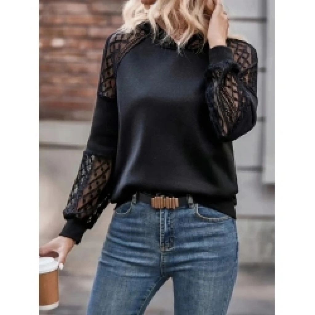 Kadın Uzun Kollu Dantelli Kapşonlu Viskon Iki Iplik Bluz