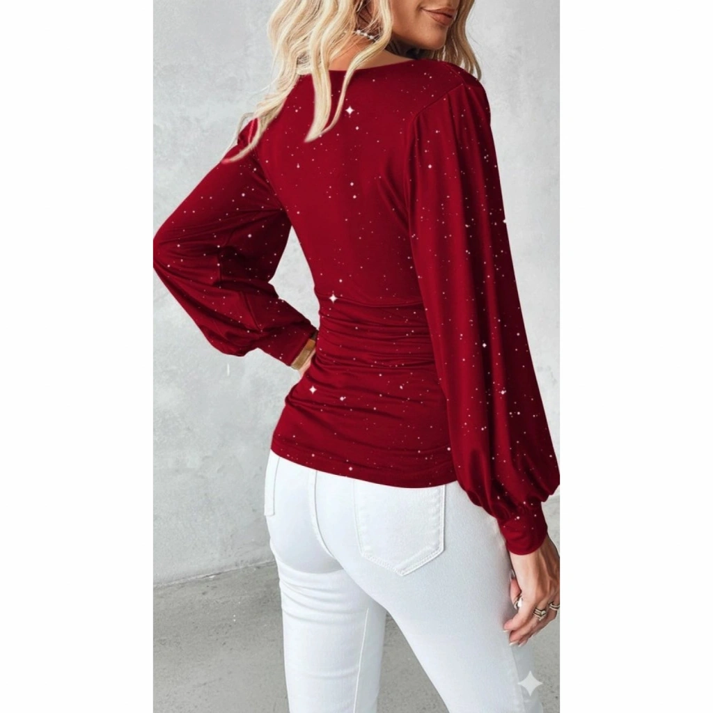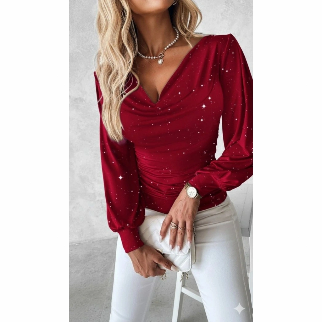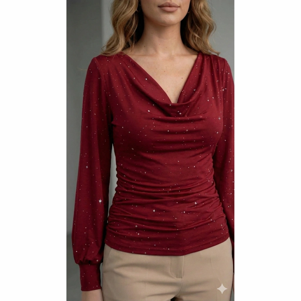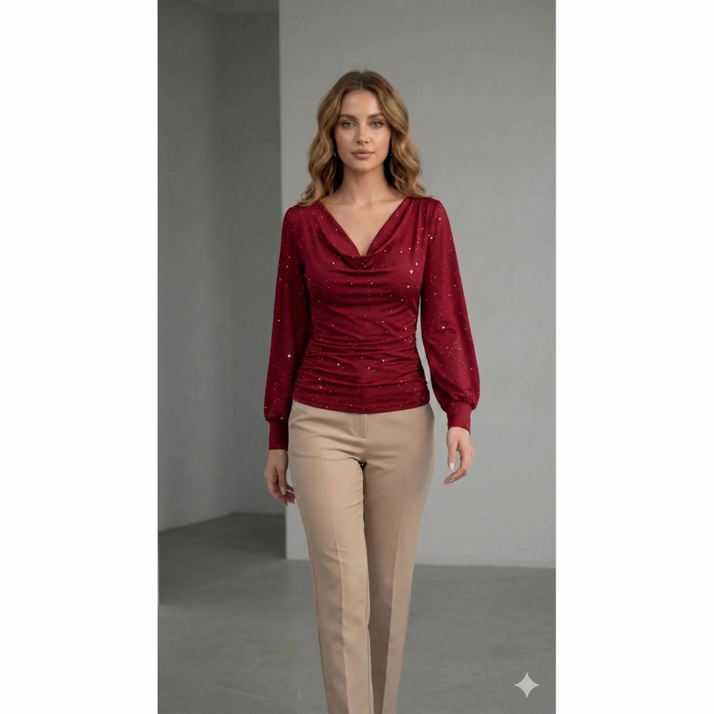 Kadın Uzun Kollu Degaje Yaka Taşlı Sandy Bluz
