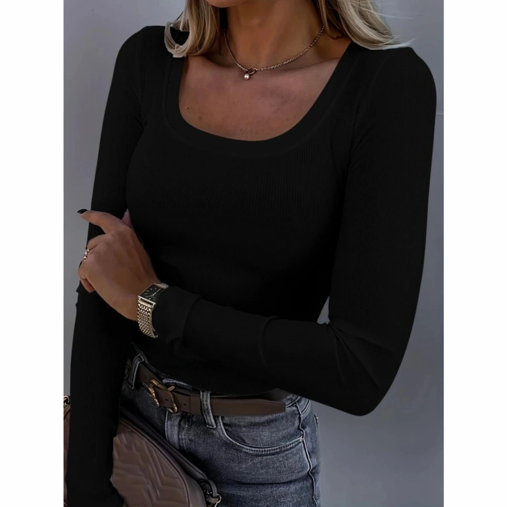Kadın Uzun Kollu Derin Yuvarlak Yaka Kaşkorse Bluz