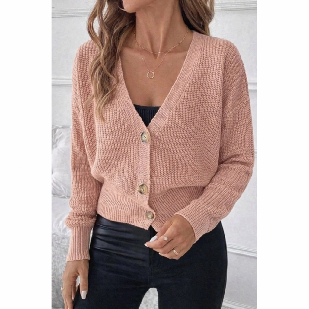 Kadın Uzun Kollu Düğme Detay Triko Bluz