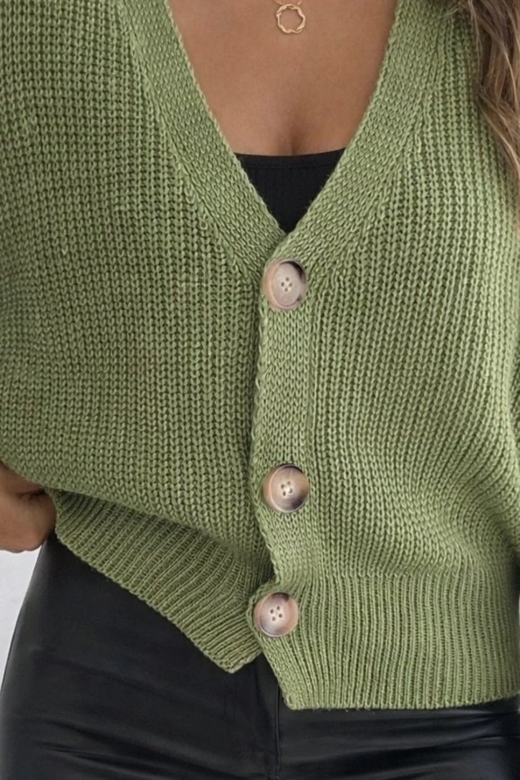 Kadın Uzun Kollu Düğme Detay Triko Bluz
