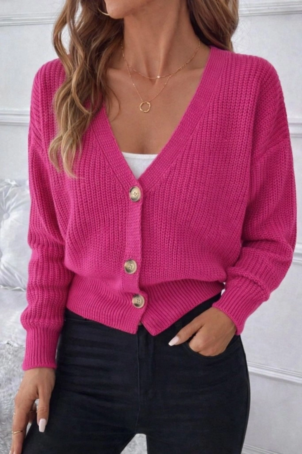 Kadın Uzun Kollu Düğme Detay Triko Bluz