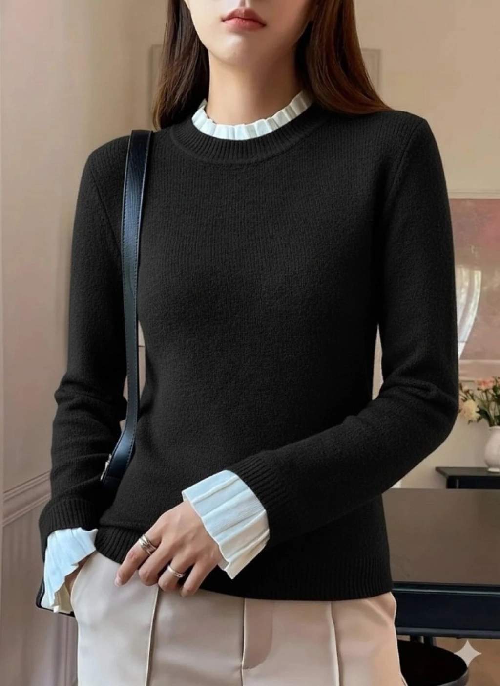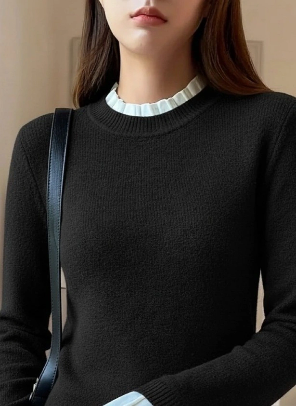 Kadın Uzun Kollu Fırfırlı Yakalı Triko Bluz