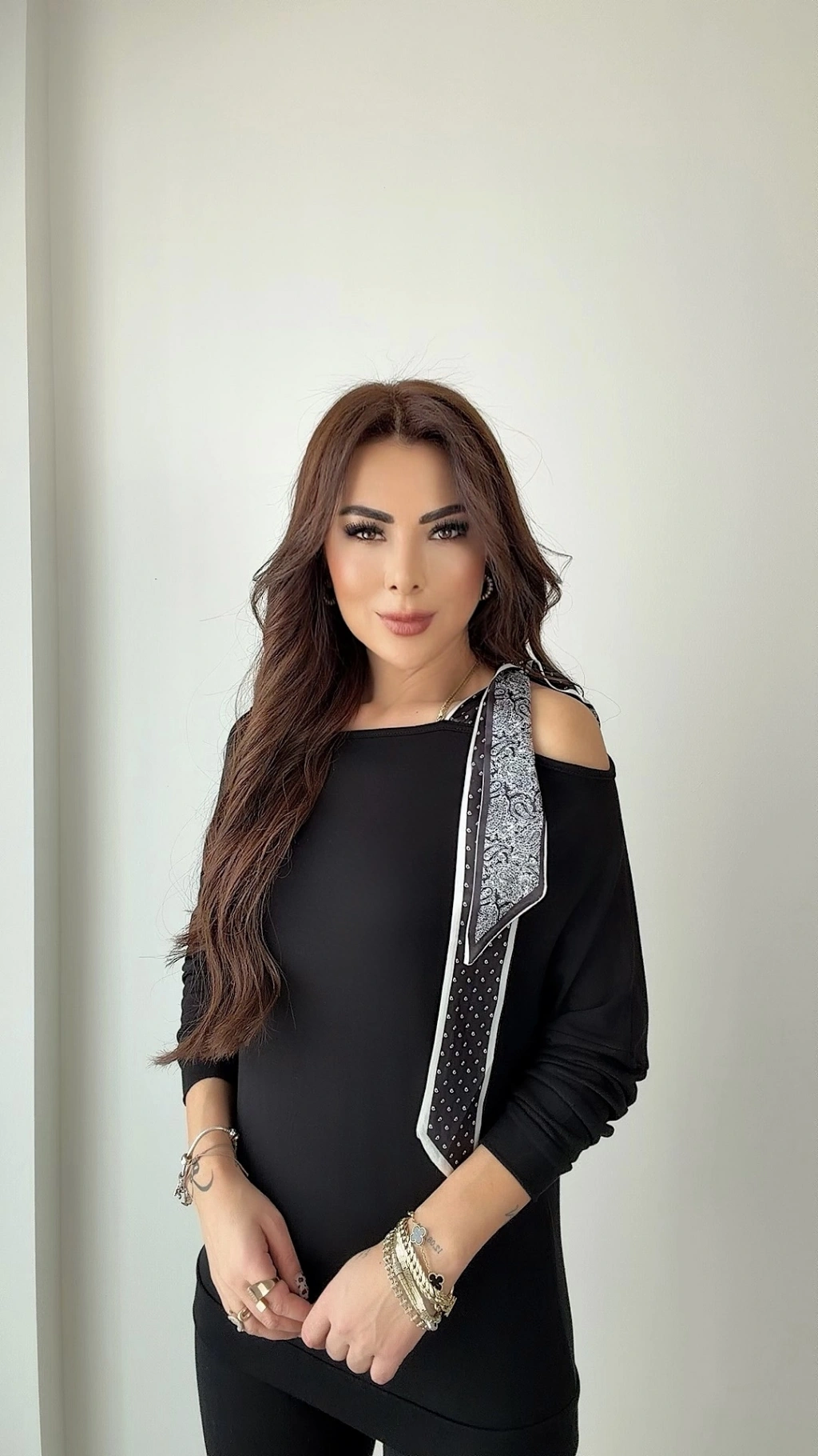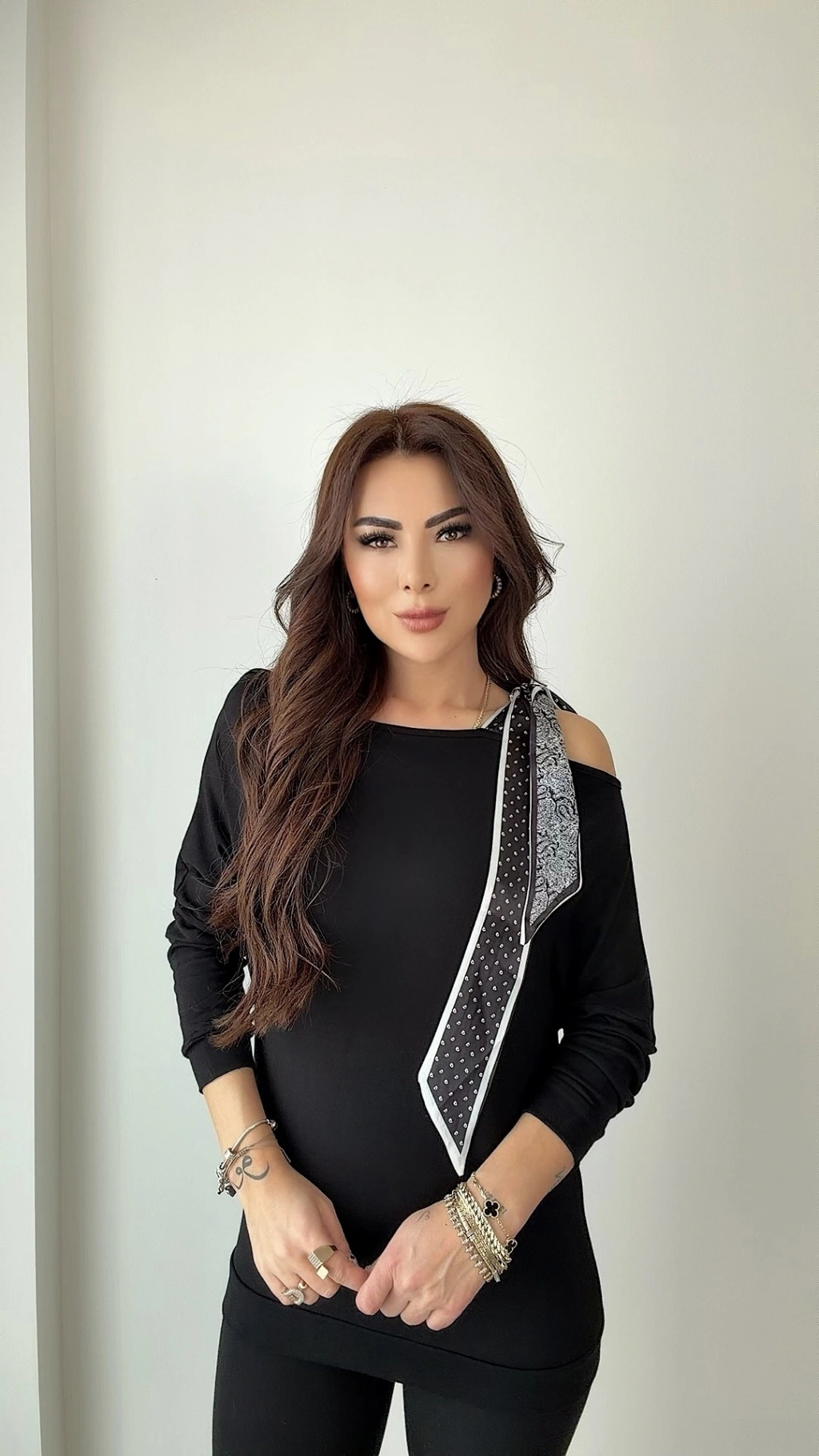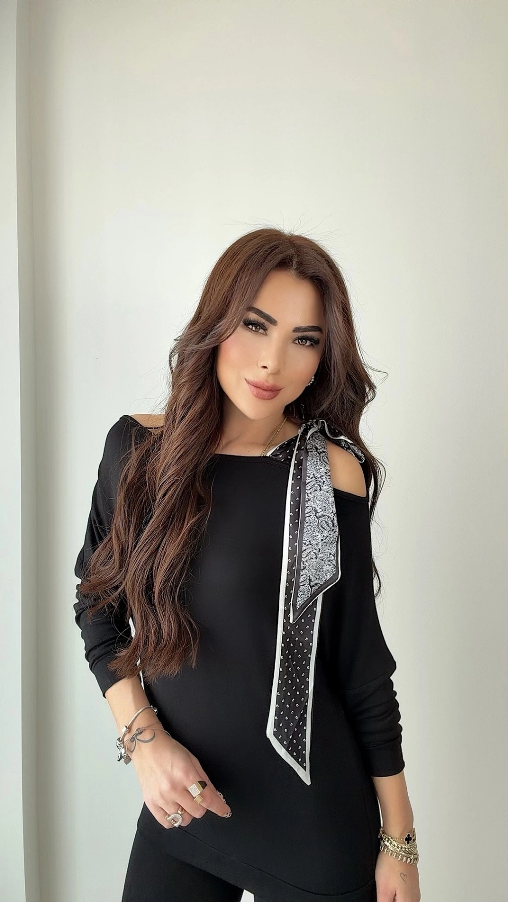 Kadın Uzun Kollu Fular Detay çilek Kumaş Bluz