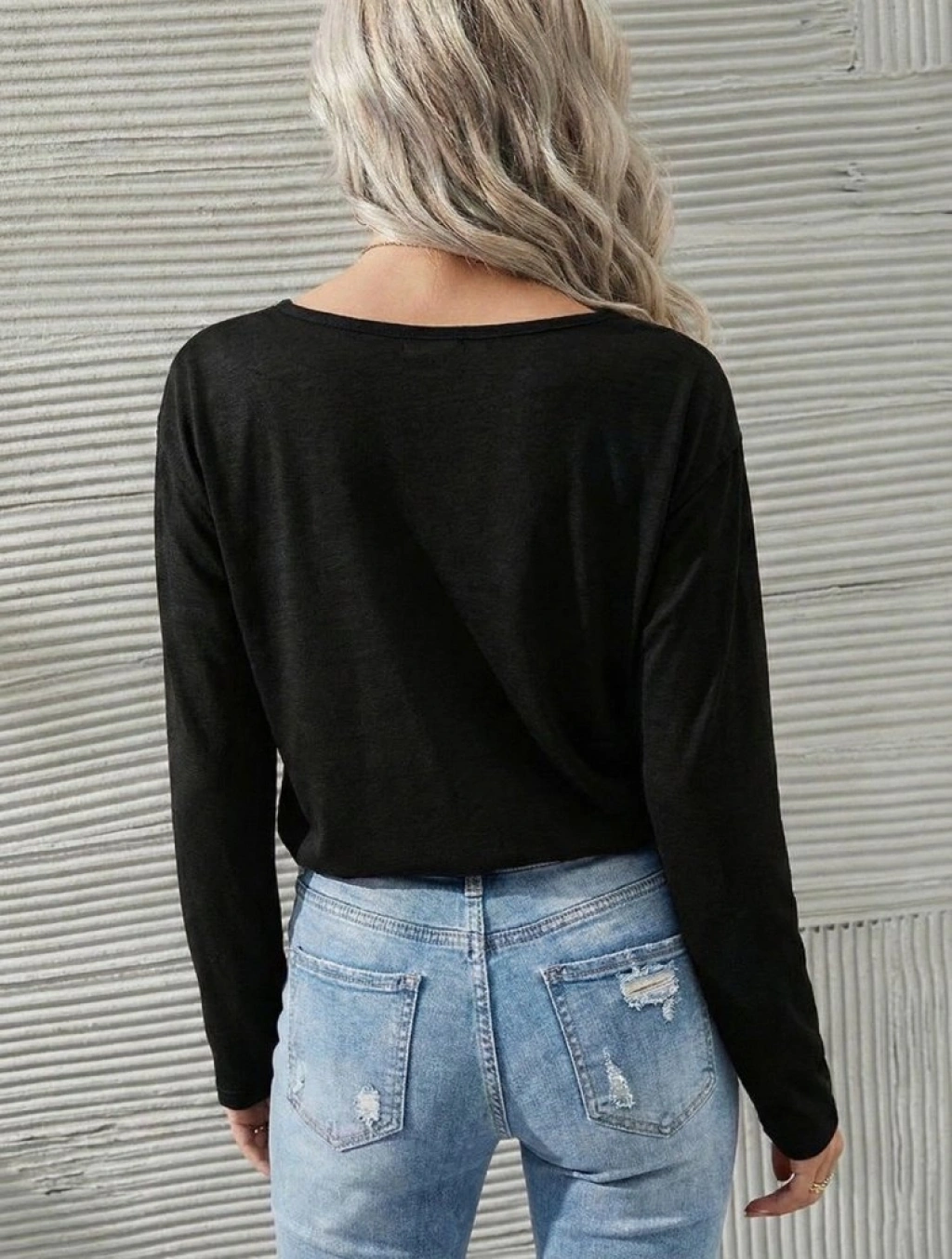 Kadın Uzun Kollu Geniş Yuvarlak Yaka Dantelli Viskon Iki Iplik Bluz