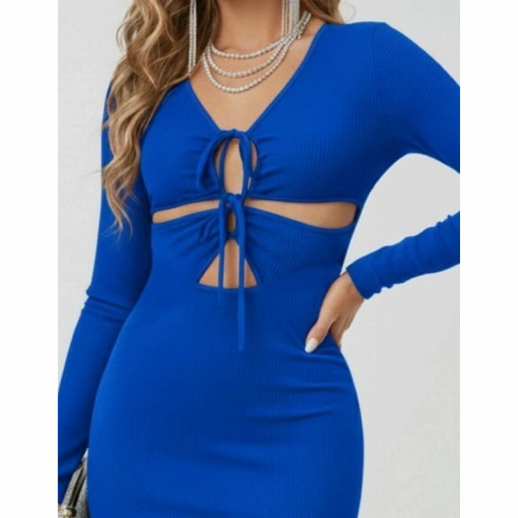 Kadın Uzun Kollu Göğüs Ve Göbek Dekolte Detay Sandy Midi Boy Elbise