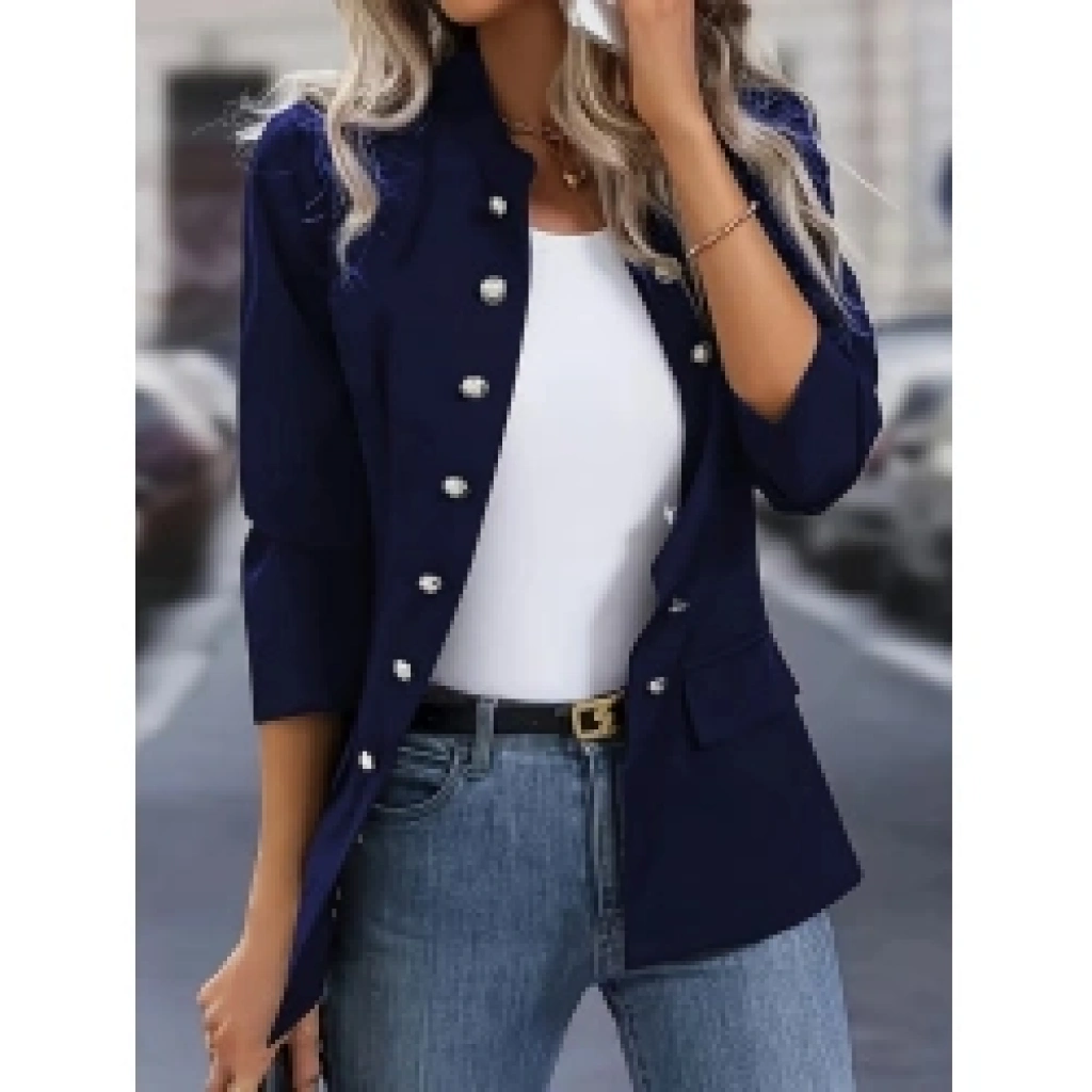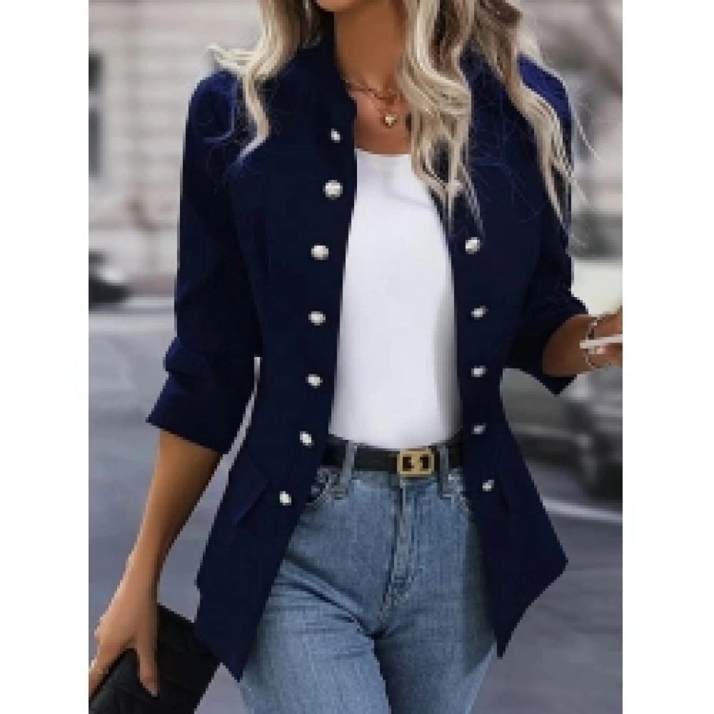 Kadın Uzun Kollu Hakim Yaka önden Düğmeli Kısa Atlas Ceket