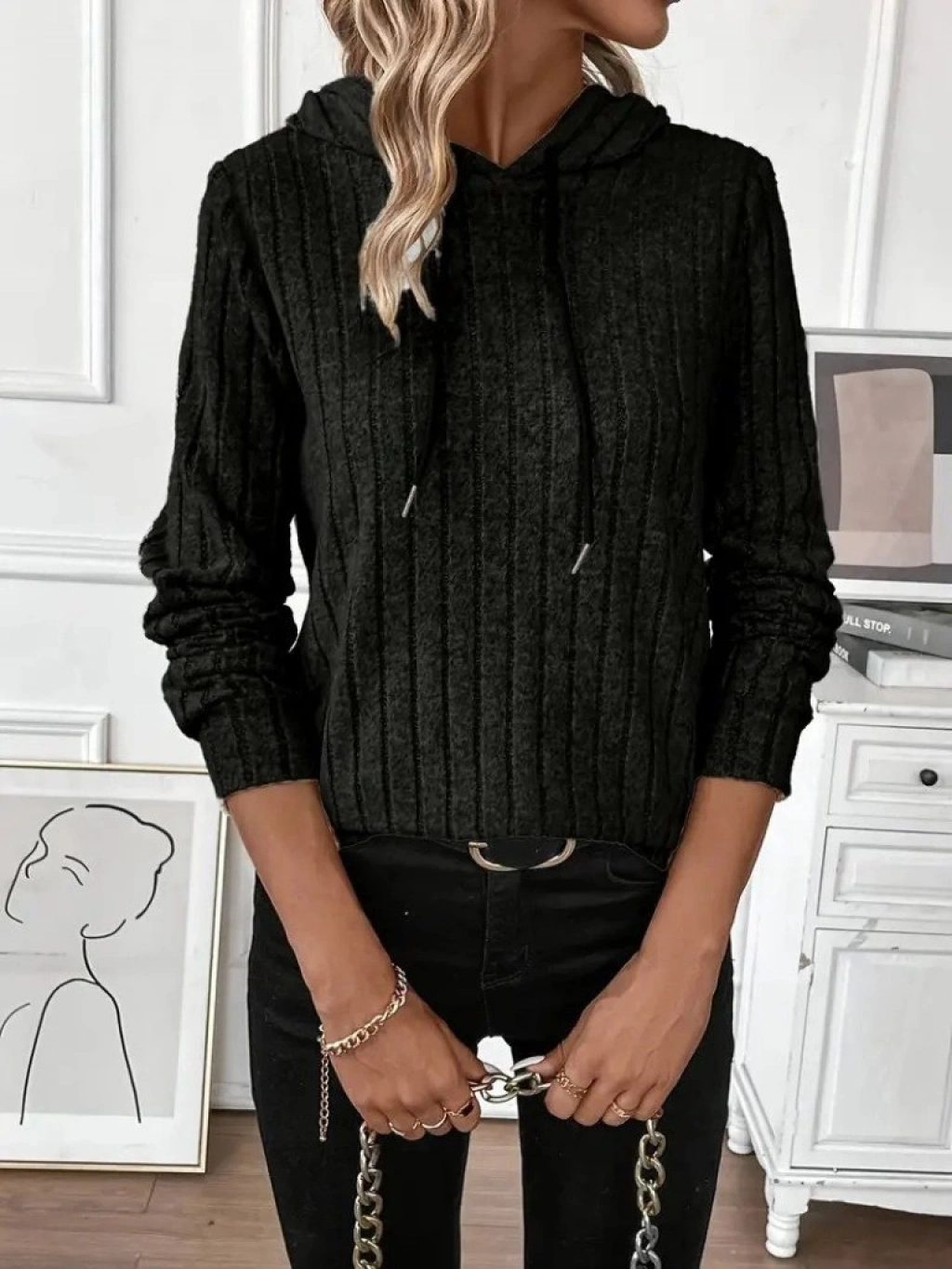 Kadın Uzun Kollu Kapşonlu Bağcıklı şardonlu Kaşkorse Bluz
